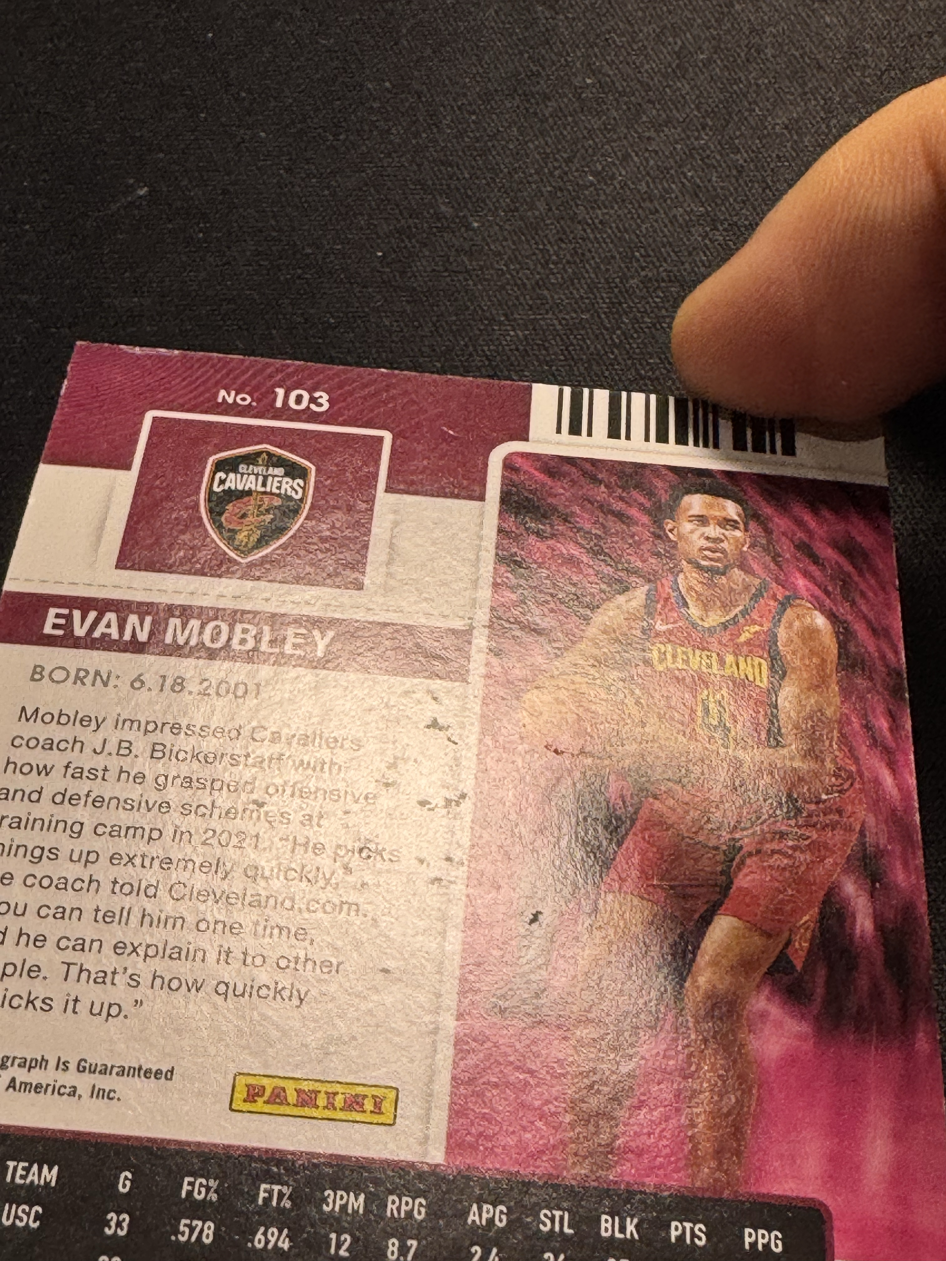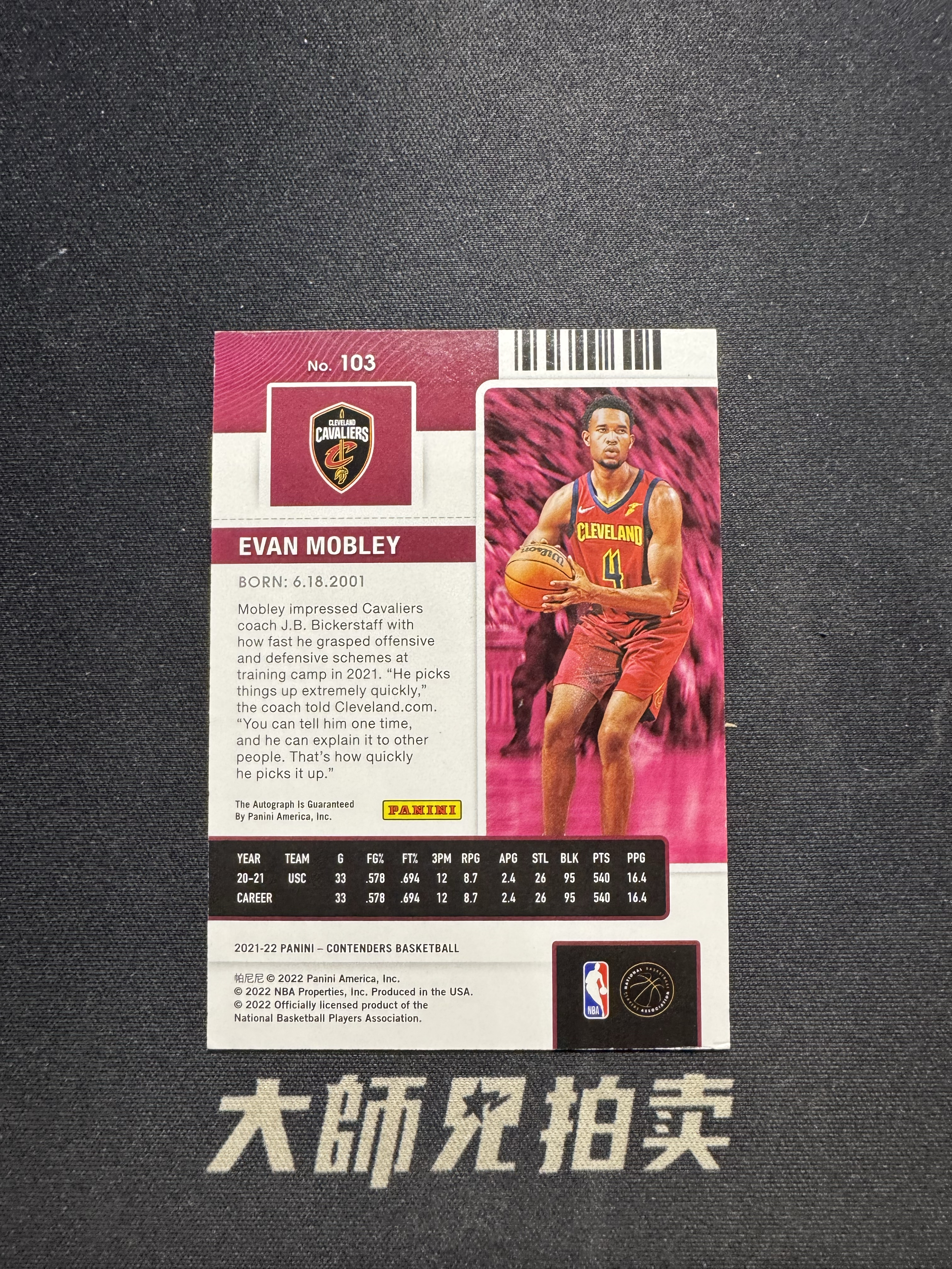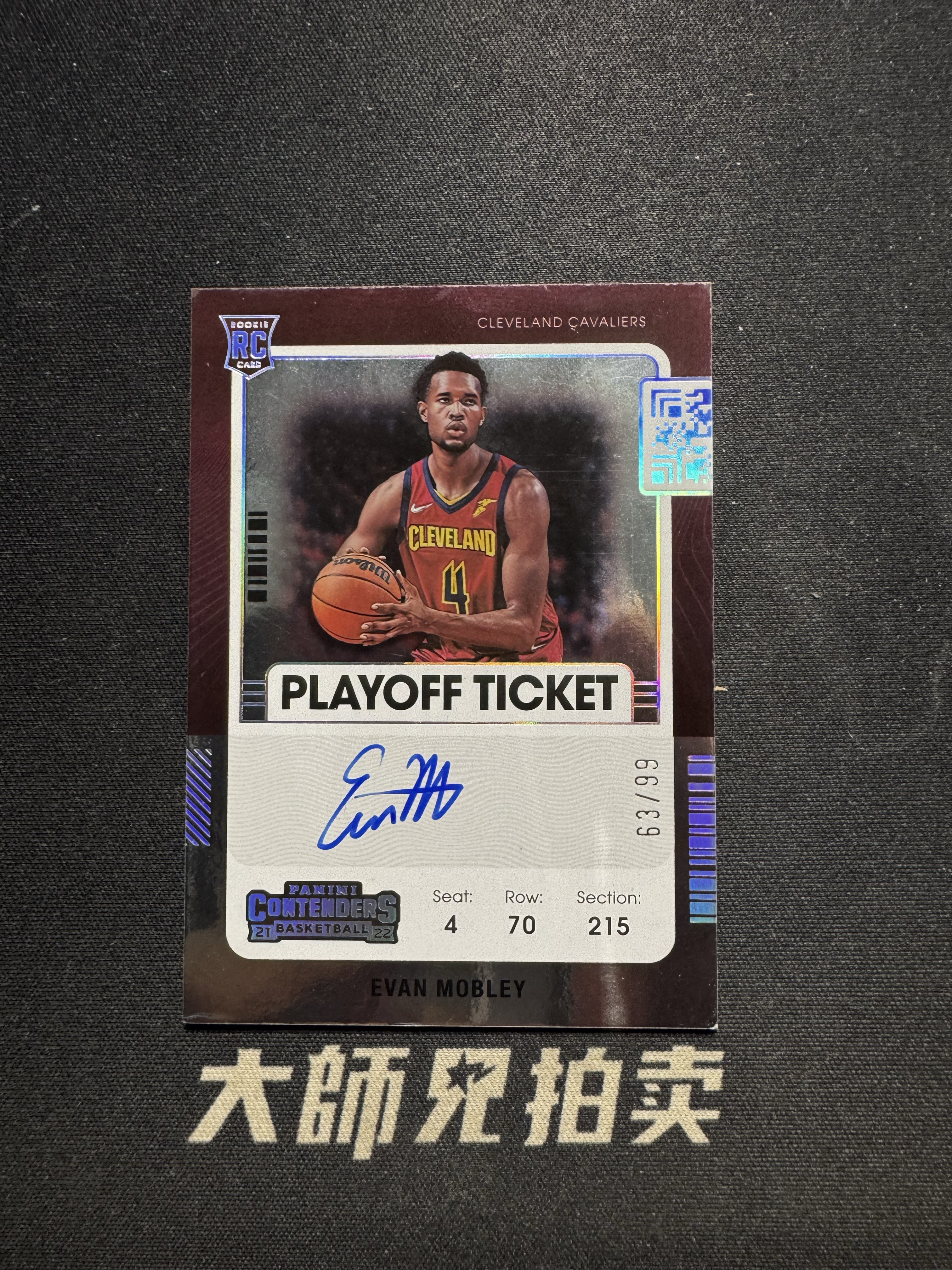 【大师兄拍卖】2021-22 Panini contenders EVAN MOBLEY RC 骑士 埃文 莫布利 莫布里 新秀 球票 /99编 签字 卡签 瑕疵如图-李译嘉-