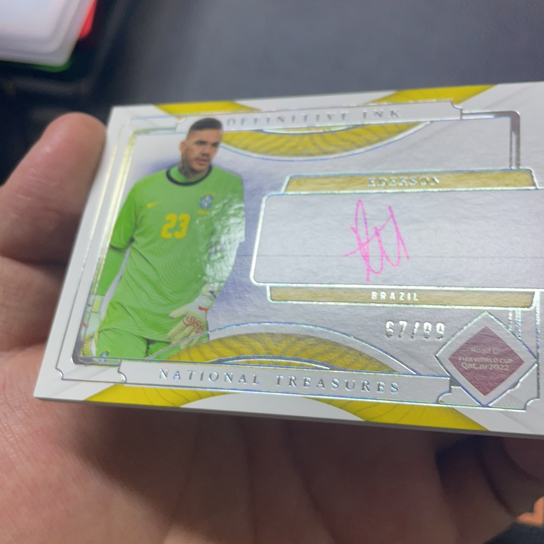 (怪兽拍卖) GSW-F85 2022 Panini National Treasures Ederson 世界杯 国宝 巴西 埃德森 签字 卡签 67/99编 微瑕如图3