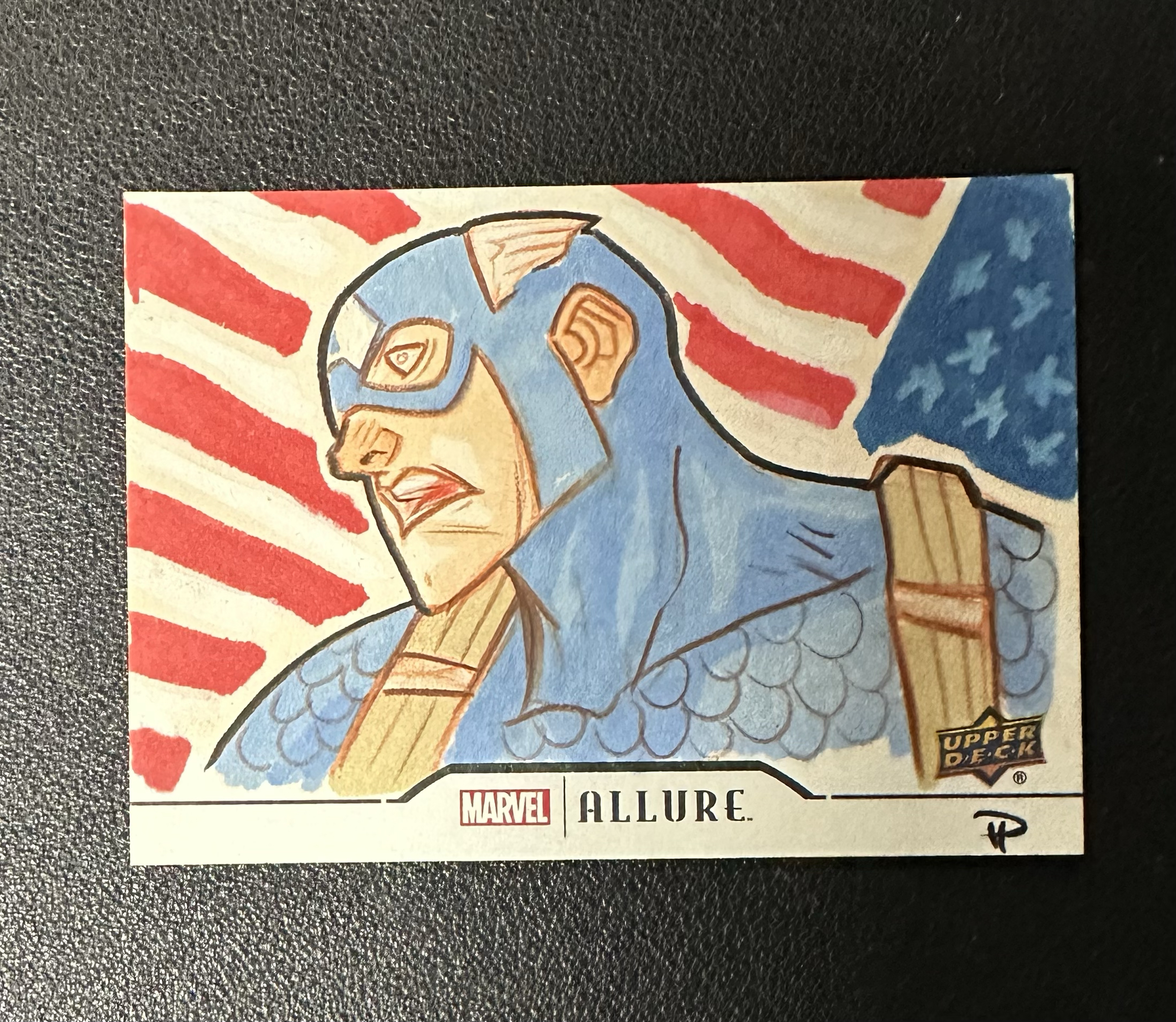 20212 Upper Deck Marvel Allure UD 漫威 小黑钻 美国队长手绘 背面画师签字 漫威小黑钻手绘官卡手绘1/1编 1of1 卡品如图