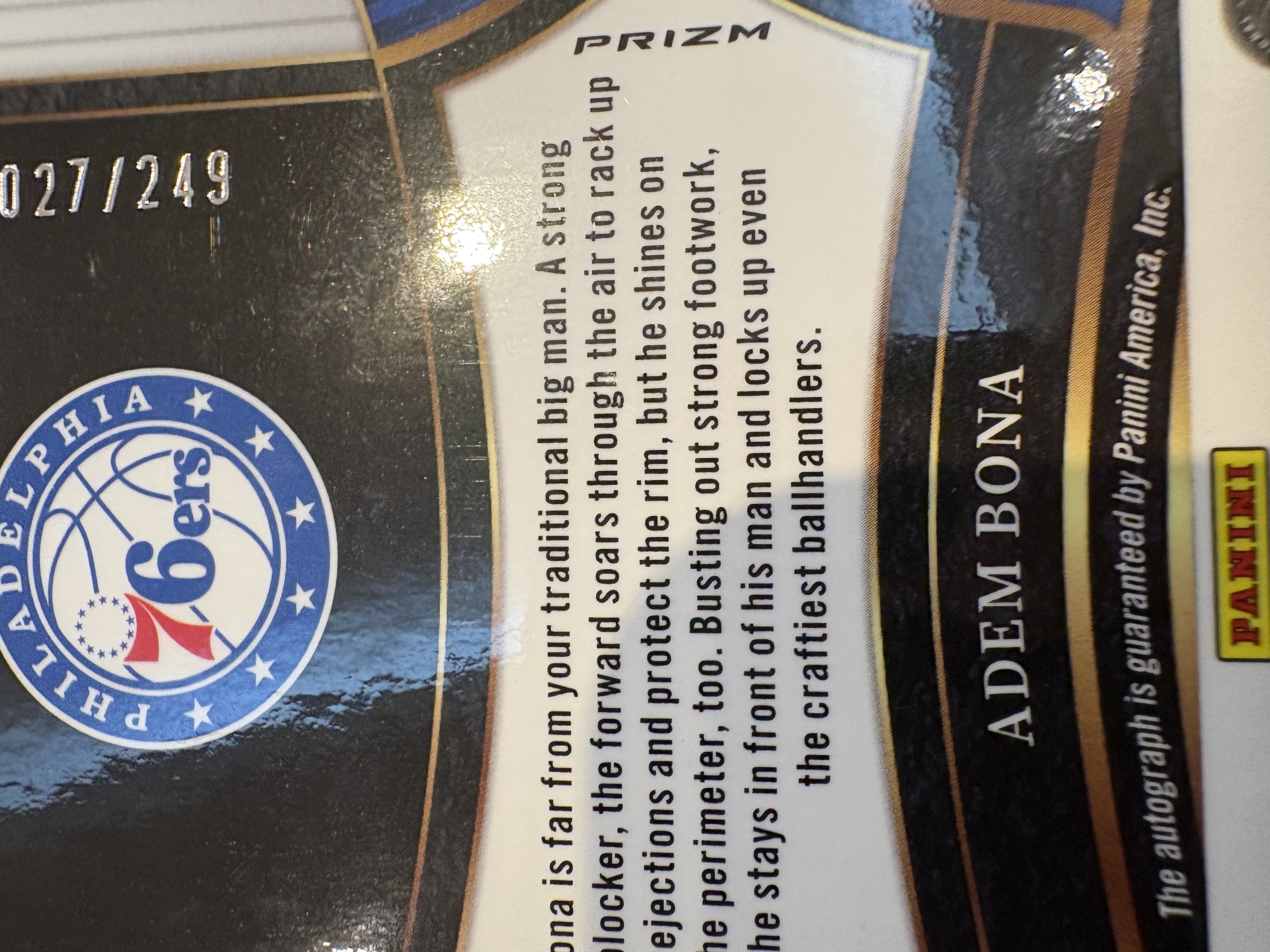 2024-25 Panini Select Adem Bona RC 阿德姆 博纳 新秀 select 系列 签字 折射 银折 249编 76人 马克西 恩比德 麦凯恩 队友 新秀年