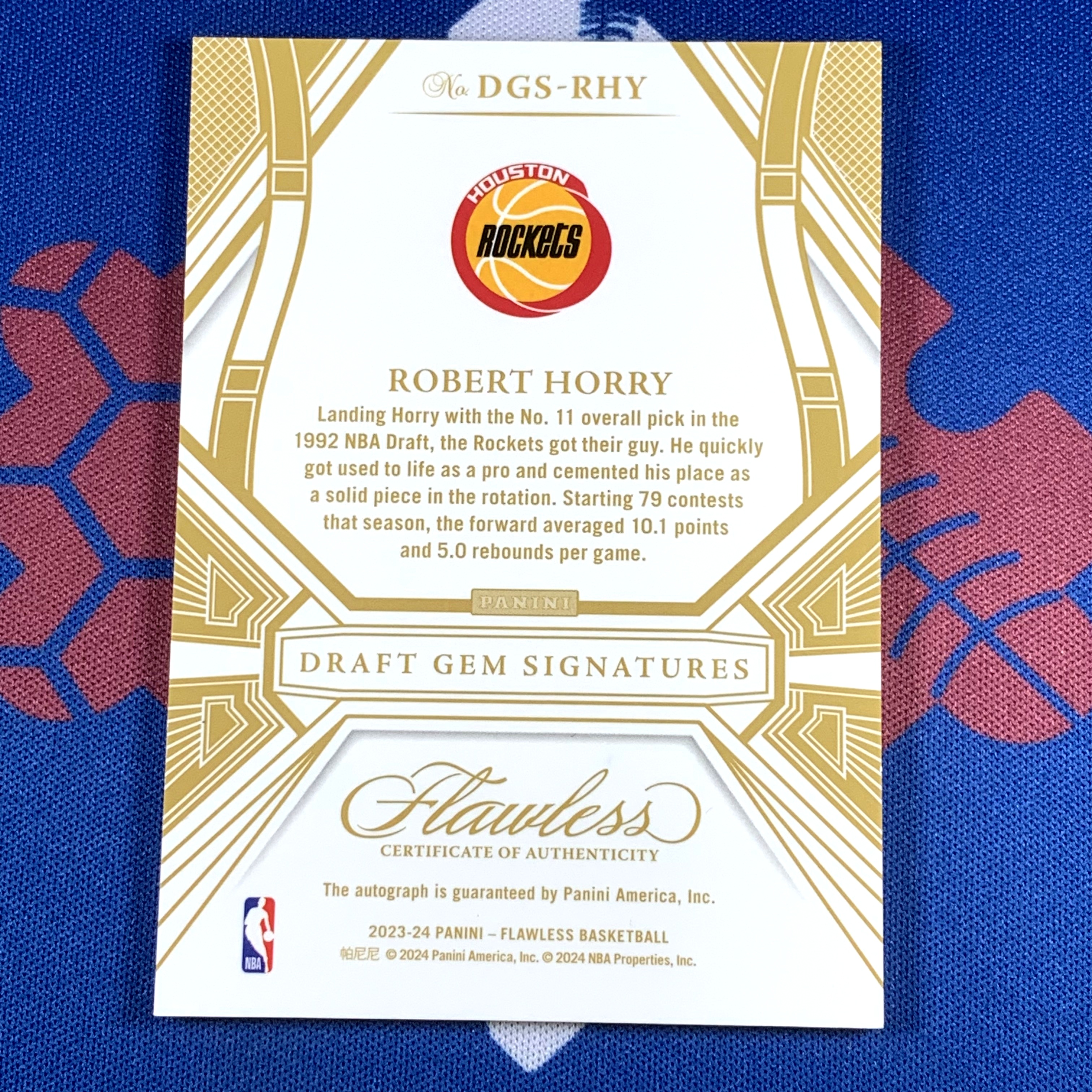 2023-24 Panini Flawless Robert Horry 【海宝】手提 火箭 罗伯特霍利 霍里 8/8编 尾编 新秀选图 选秀签字卡 卡签 凑套 收藏必备【SZH】