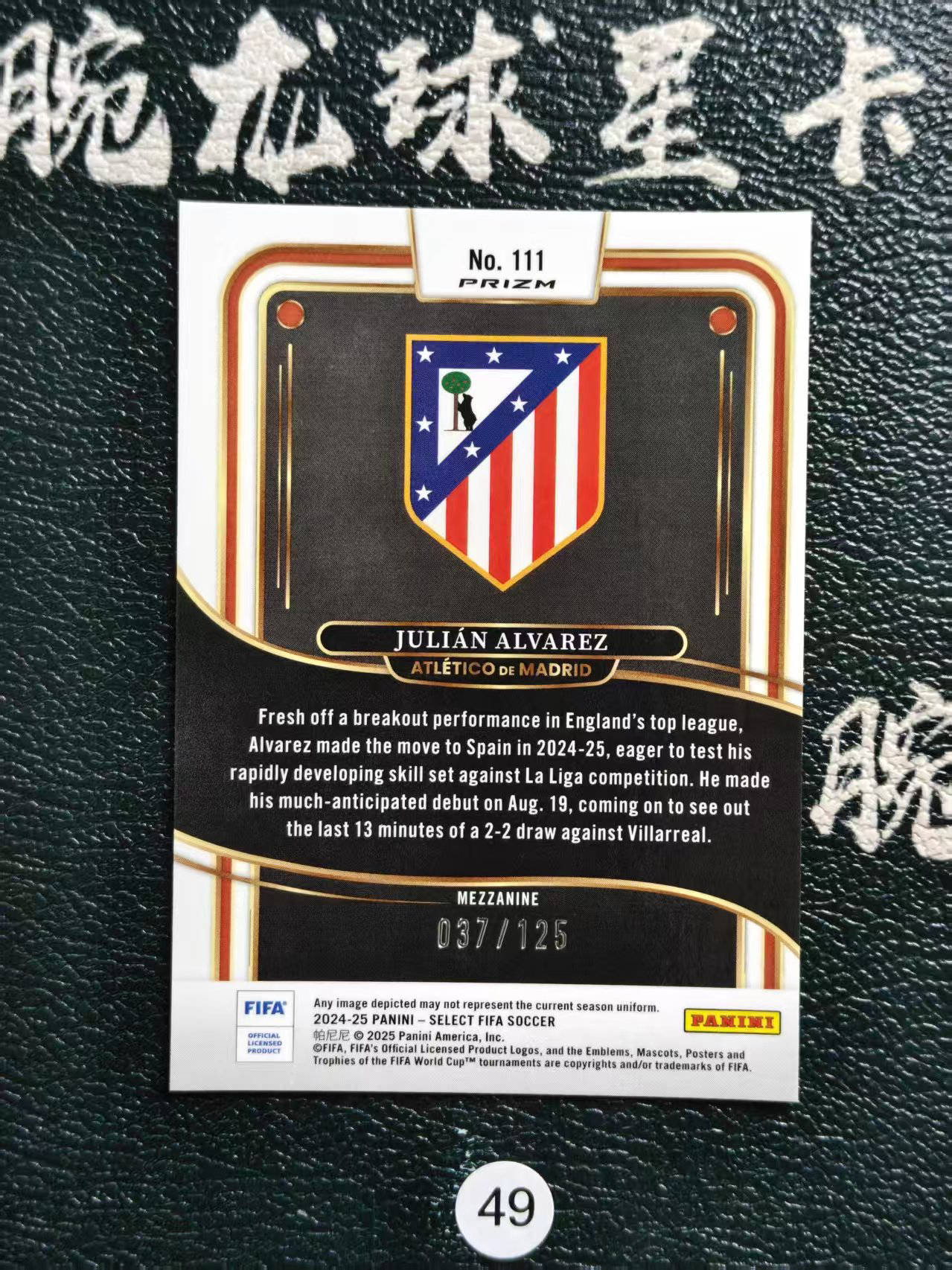 2024-25 【腕龙拍卖 接代卖】 腕龙HanwaiiAV5 Panini Select FIFA 阿尔瓦雷斯 马德里竞技 马竞 阿根廷 橙格子折 37/125编 JULIAN ALVAREZ