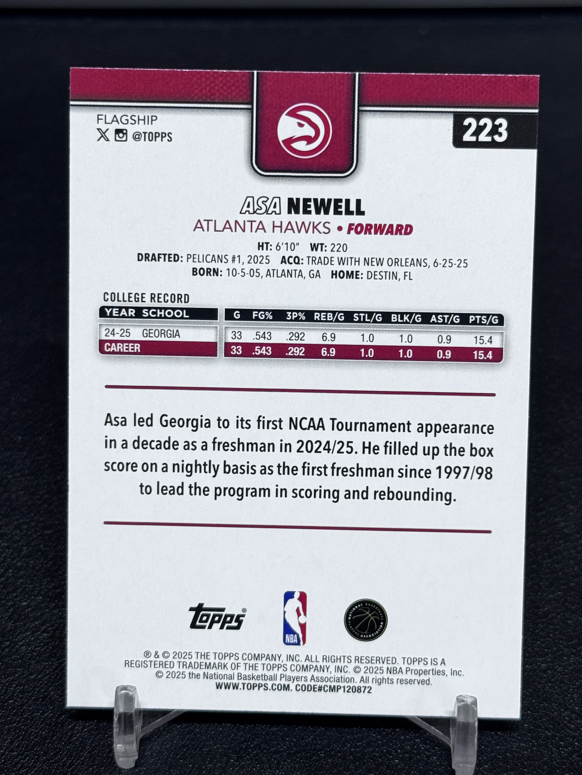 【浩行拍卖 截标预付82%】2025 topps flagship asa newell 旗舰 老鹰 阿萨 纽厄尔 RC 新秀 紫折 折射 115/250编 专收必备 瑕疵看图「珺芊」1203B01裊