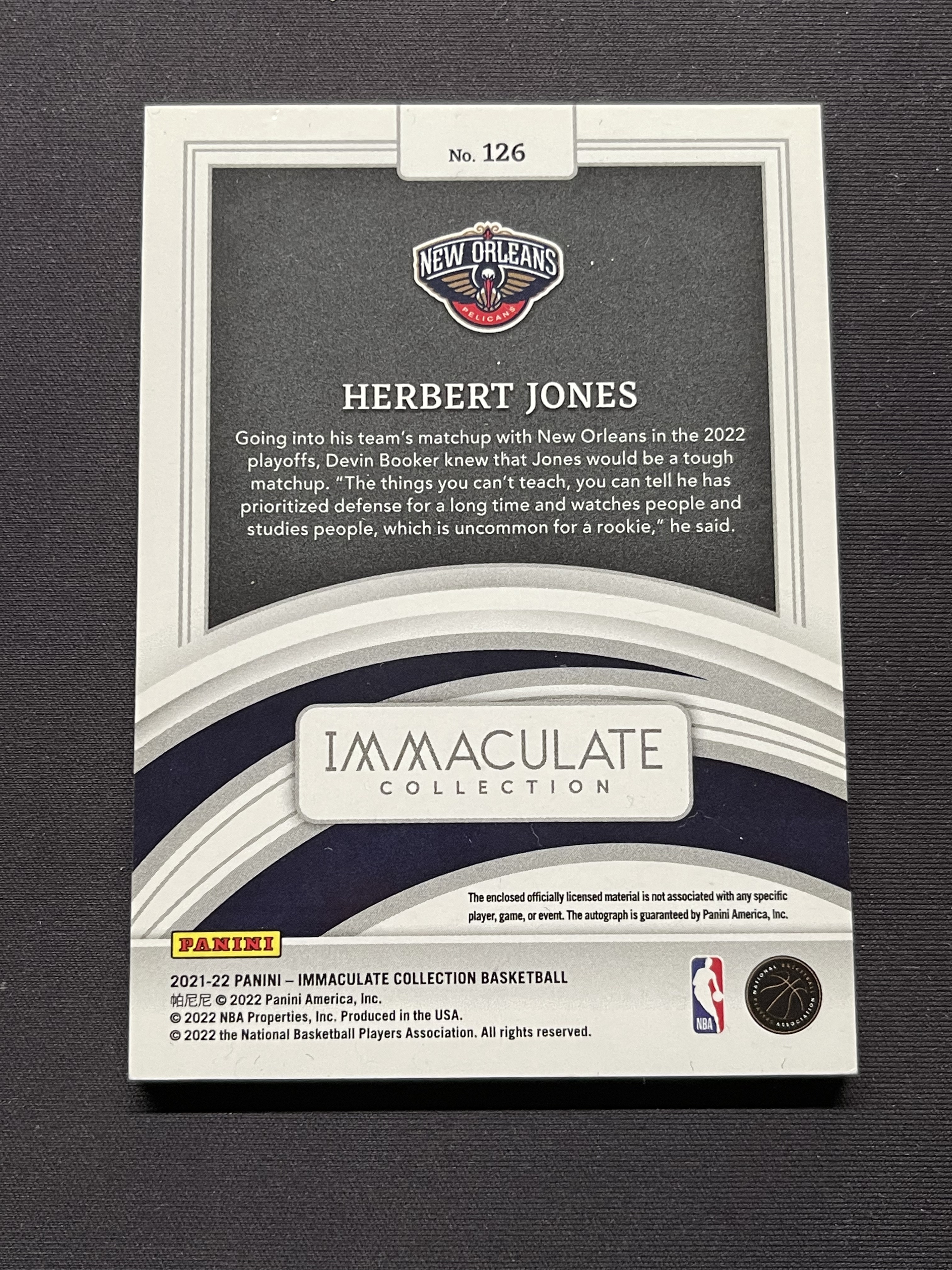 2021-22 Panini Immaculate Herbert Jones RC 鹈鹕 赫伯特琼斯 镜面 新秀 patch 签字卡签 RPA 38/49编 红版 瑕疵如图 不累计「老夫子」215