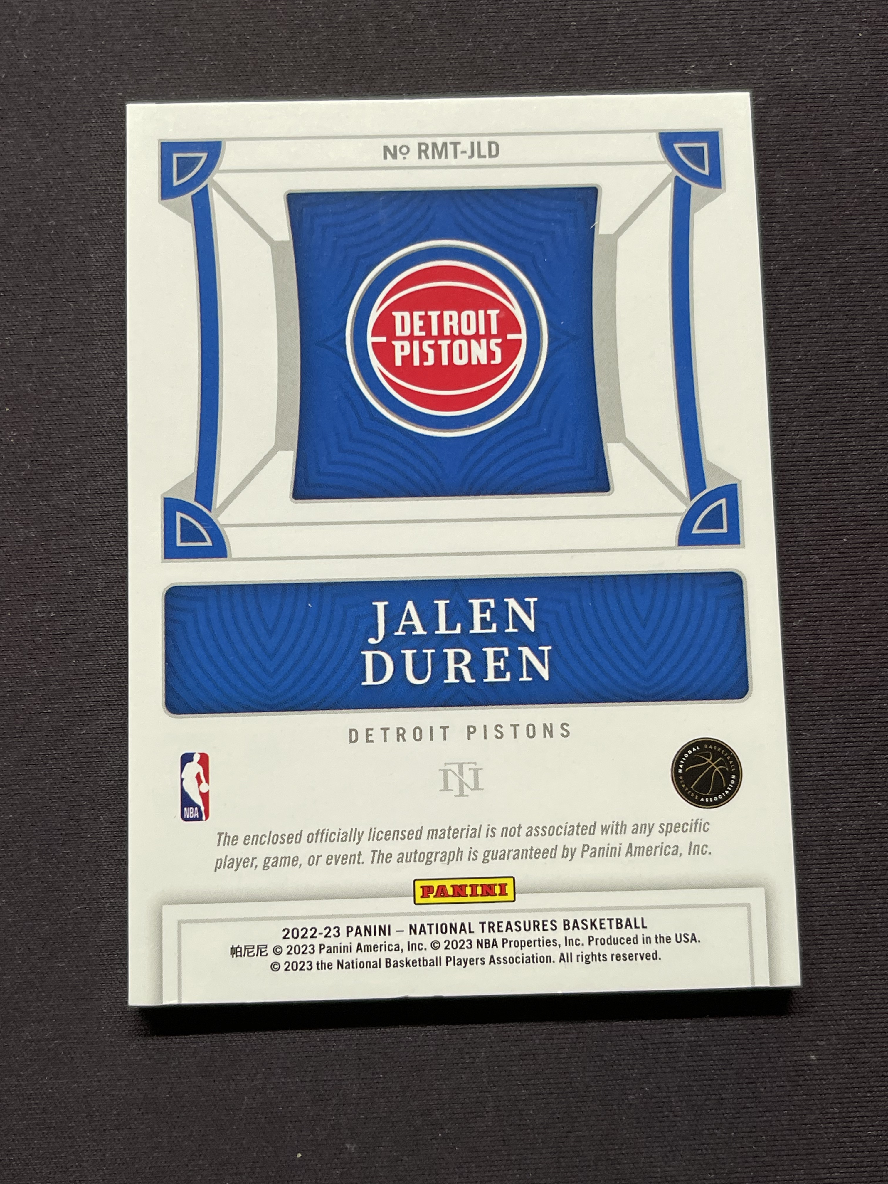 2022-23 Panini National Treasures Jalen Duren RC 国宝 活塞 杰伦杜伦 新秀 三窗球衣patch 签字卡签 55/99编 不累计「老夫子」215