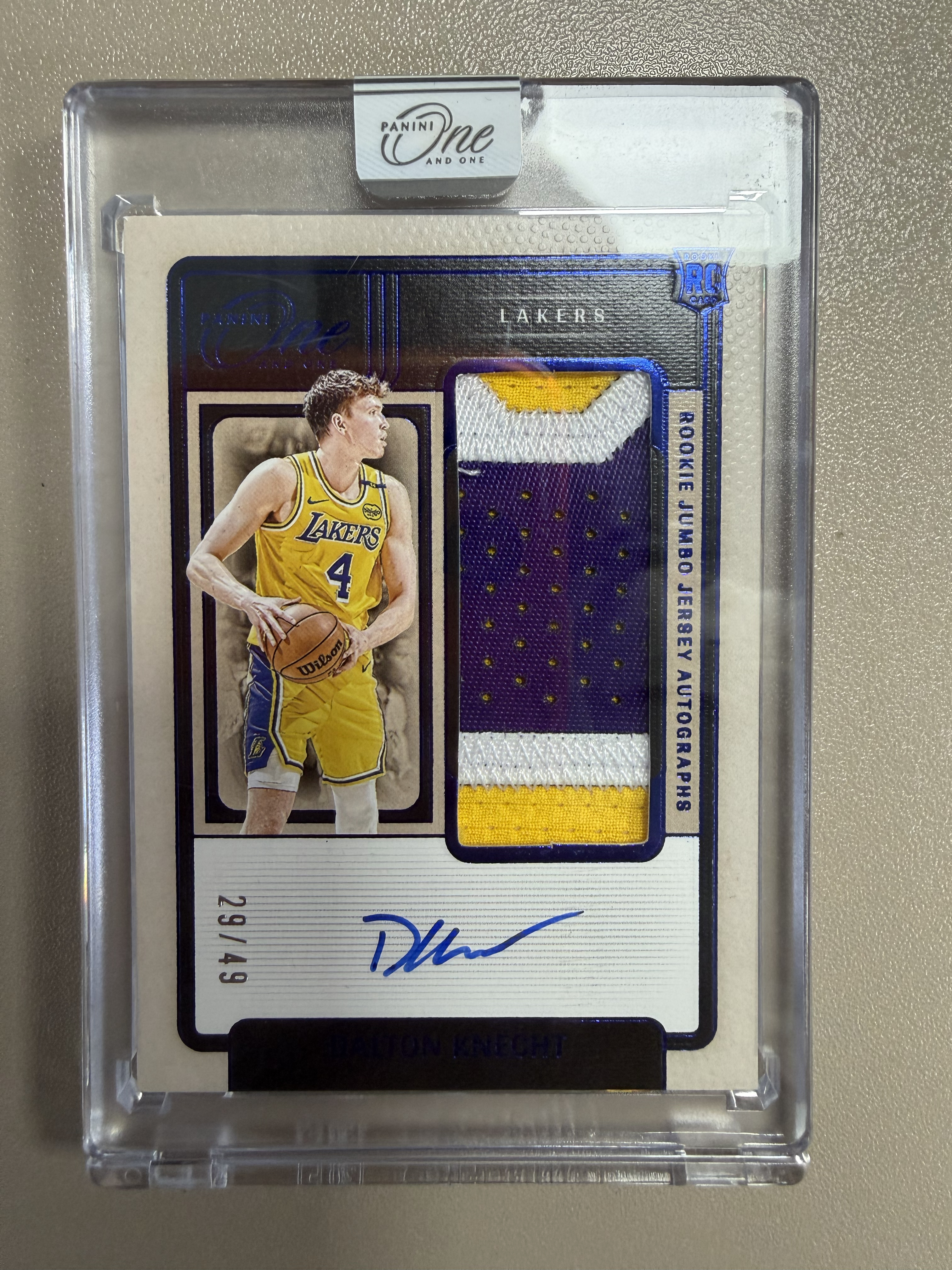 2023-24 Panini One and One Dalton Knecht RC 篮球OAO 多尔顿 克内克特 湖人 好人新秀 RJJA 大窗 暴力切割 完美卡签 蓝平行 29/49编