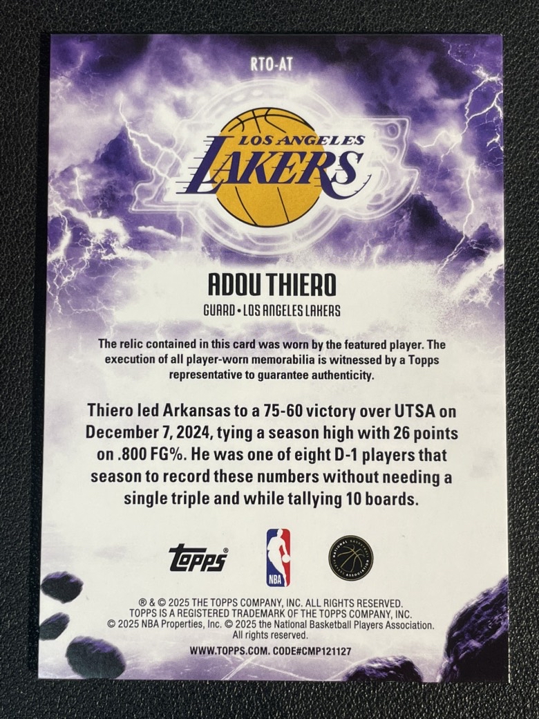 2025-26 Topps NBA Flagship Adou Thiero RC 511 阿杜 蒂耶罗 湖人 新秀 折射 银折 应势而起 球衣 物料 微瑕如图 卡品如图 鱼尾狮