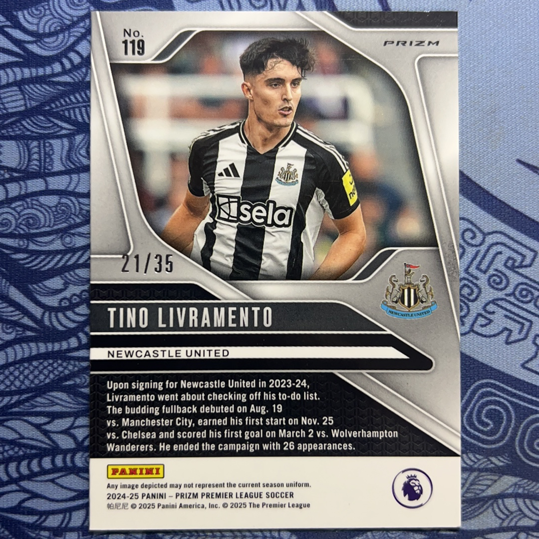2024-25 Panini Prizm Tino Livramento 英超 PZ 纽卡斯尔联 利夫拉门托 35编 低编 英格兰 白折 黑白配 队服同色 收藏凑套必备