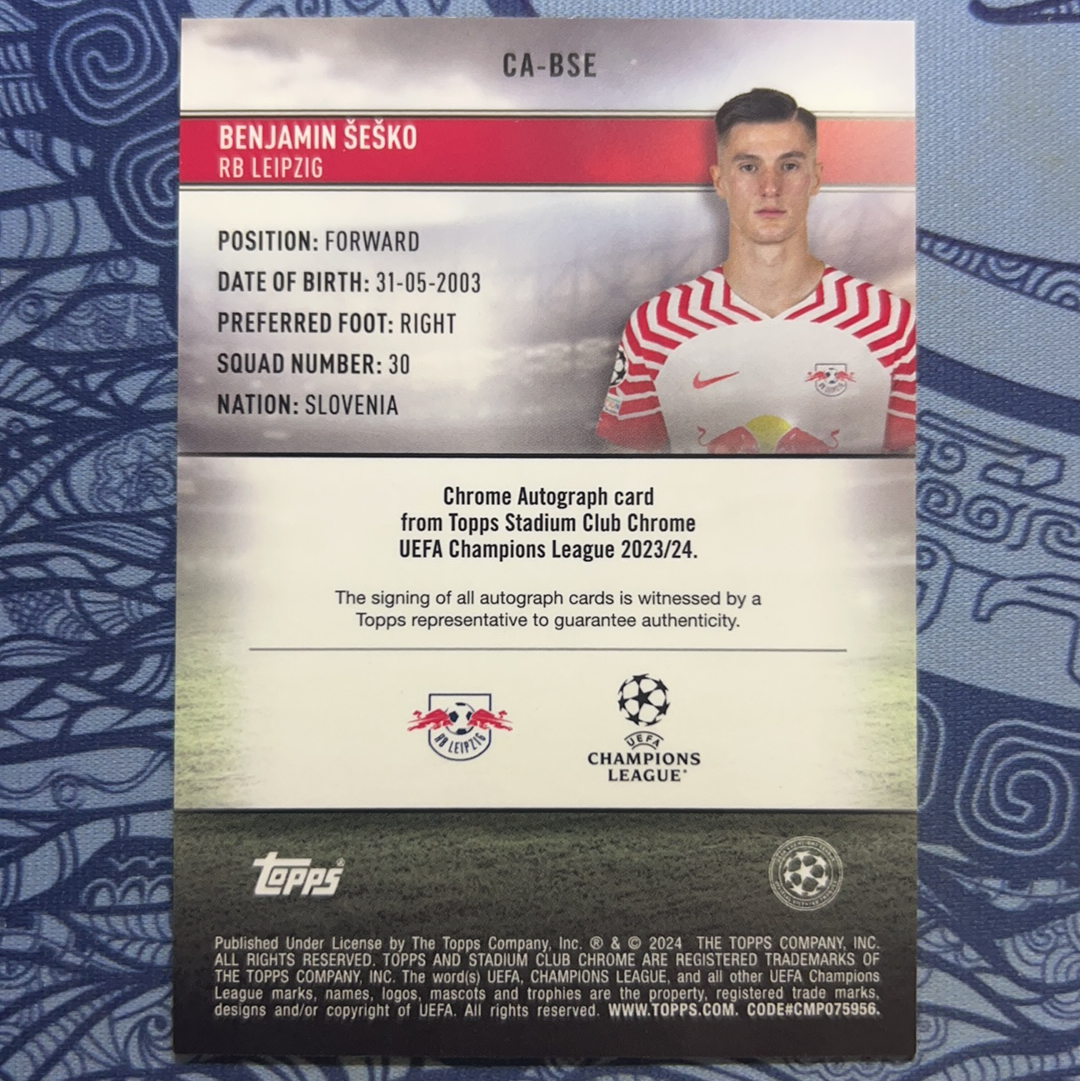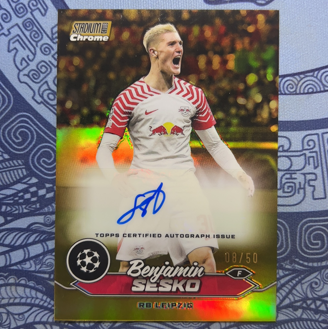 2024 Topps Stadium Club Chrome Benjamin Sesko 欧冠 竞技场 莱比锡红牛 曼联 舍什科 塞斯科 谢什科 50编 低编 签字 完美墨迹 金折 顶级射手豪门猎物