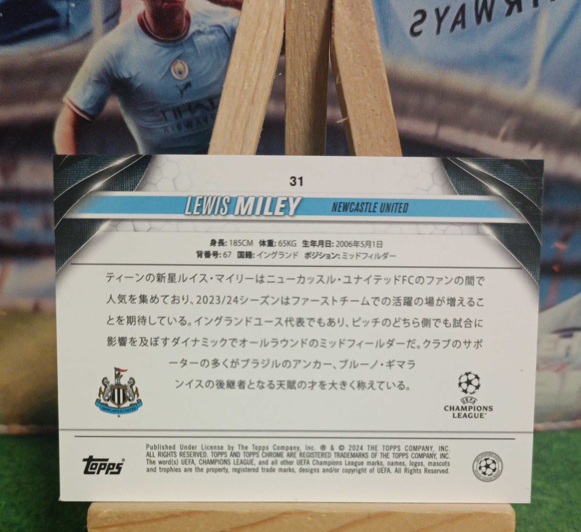 2024 Topps Chrome Lewis Miley RC 欧冠 日版 纽卡斯尔联 RC 刘易斯 麦利 米利 99编 绿Mojo折 折射 英格兰🏴 状态火热 卡品如图