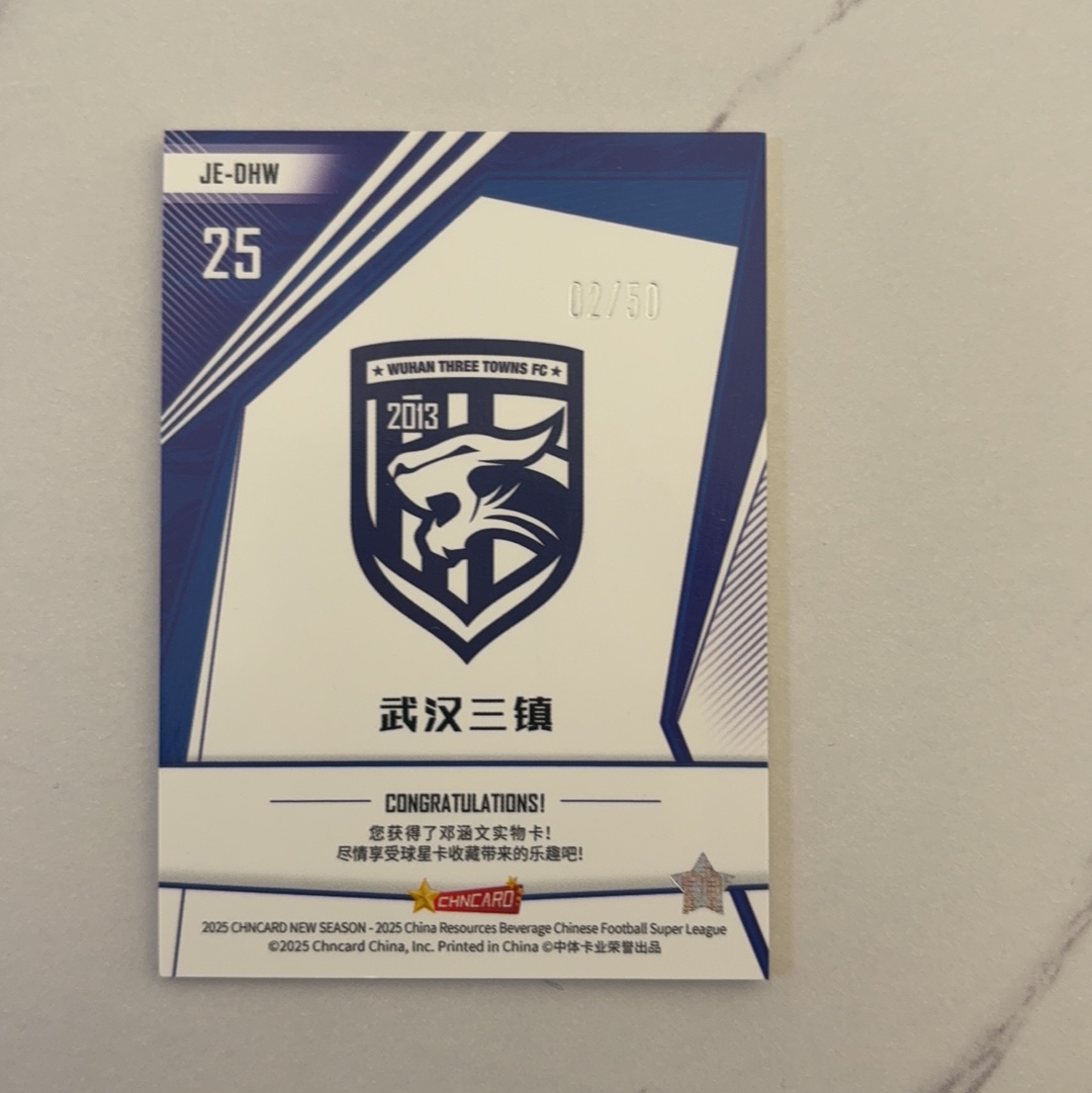 2025 中体卡业 新赛季 Deng Hanwen 中超新赛季系列 武汉三镇 后卫 邓涵文 2/50编 铜版 新战力球衣 收藏必备 卡品如图 暴风熊代拍 时间之虫