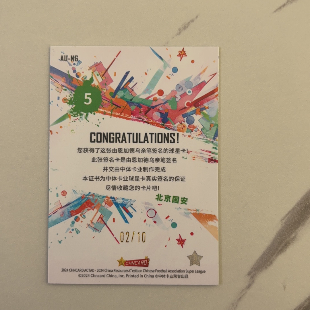 2024 中体卡业 新赛季 恩加德乌 中超渲染系列 喀麦隆 北京国安 后卫 恩加德乌 2/10编 低编 金折 签字 收藏必备 卡品如图 暴风熊代拍 时间之虫