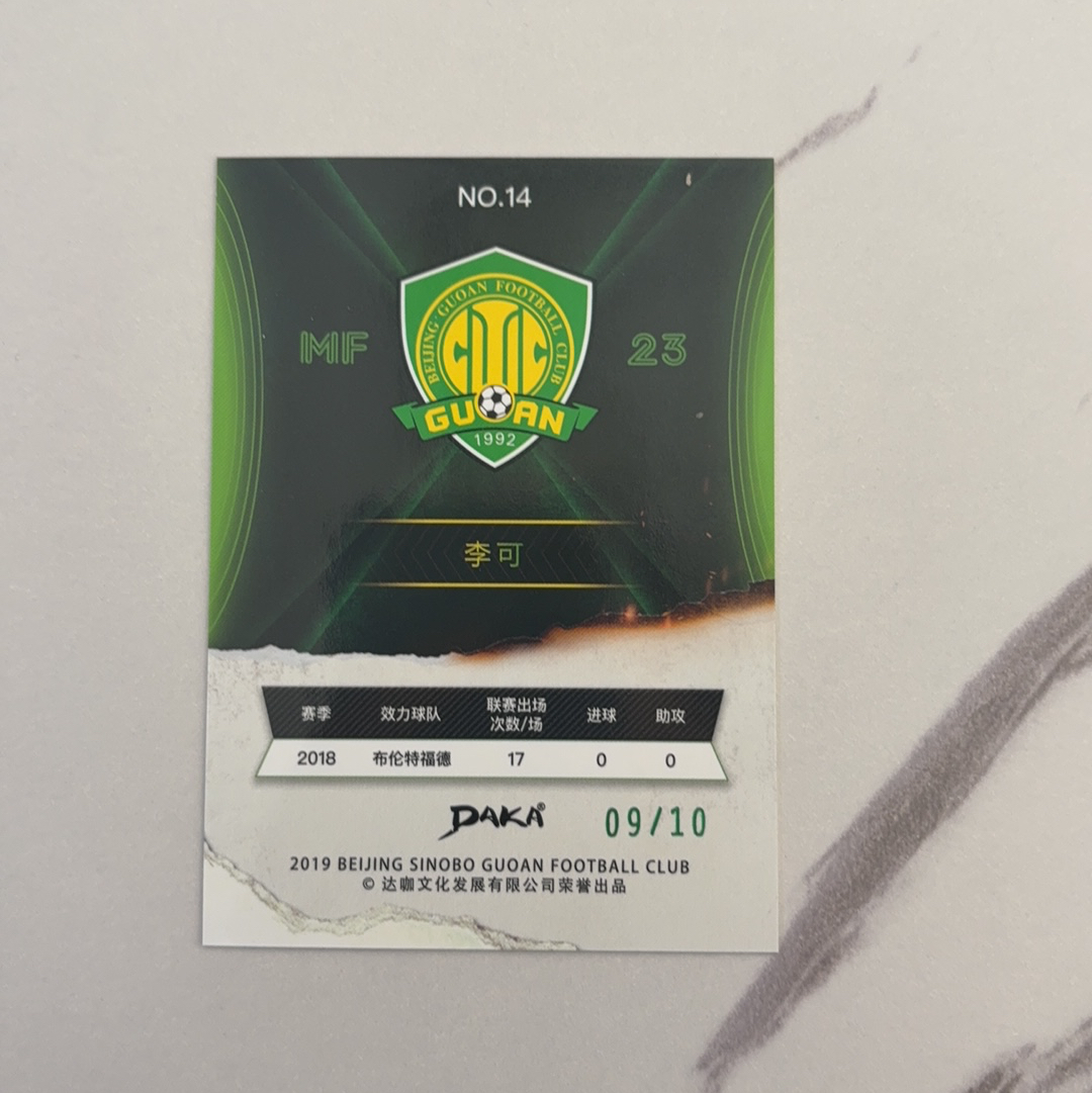 2019 DAKA 北京国安足球俱乐部 李可 北京国安队盒系列 中国 北京国安 归化中场 李可 9/10编 低编 收藏必备 卡品如图 暴风熊代拍 时间之虫