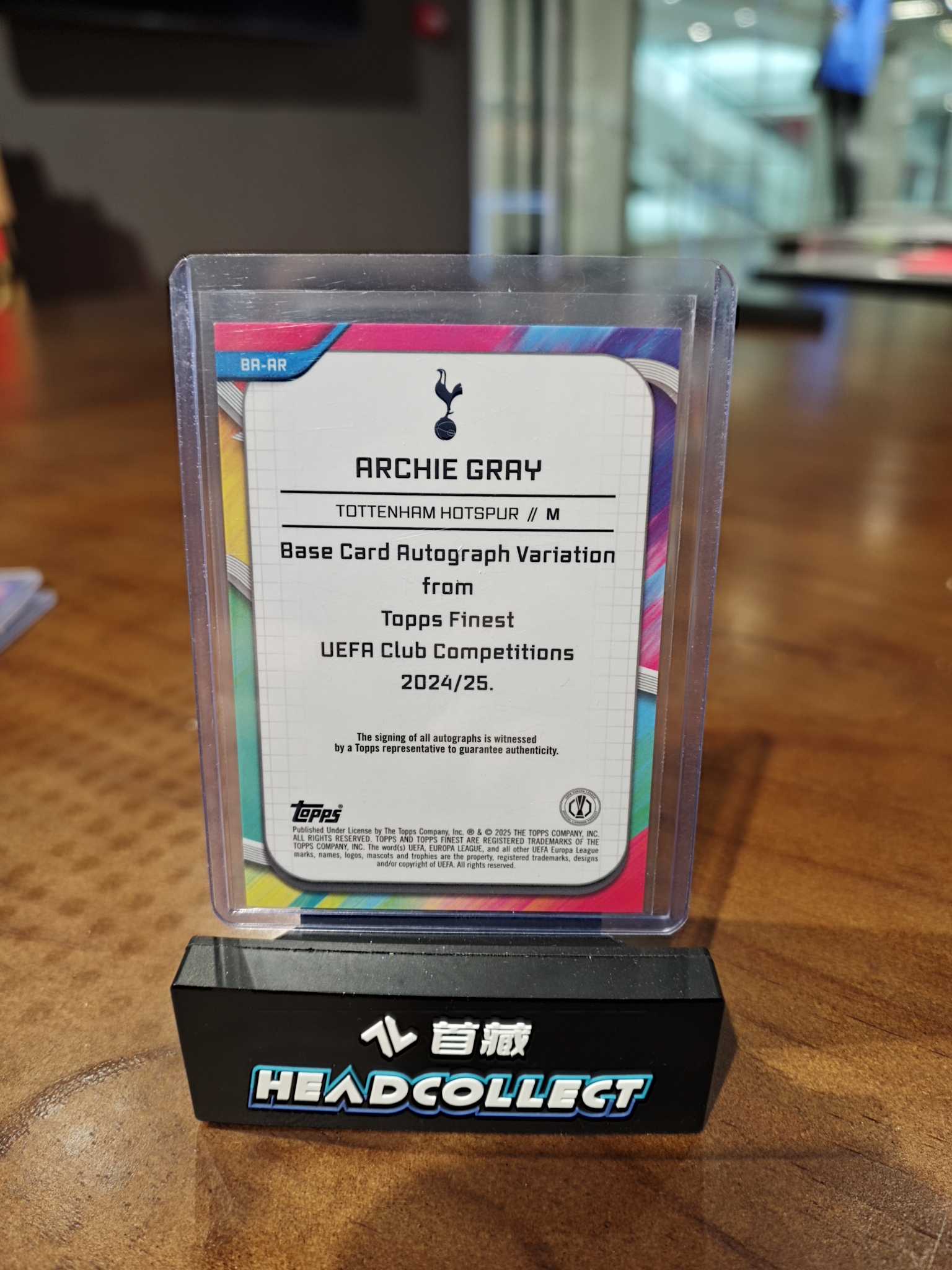 【天府红翼】2024-25 TOPPS Finest 欧战 折射 限量 签字 热刺 新秀 阿奇 格雷 Gray 99编 墨迹清晰 投资收藏 凑套必备 enic
