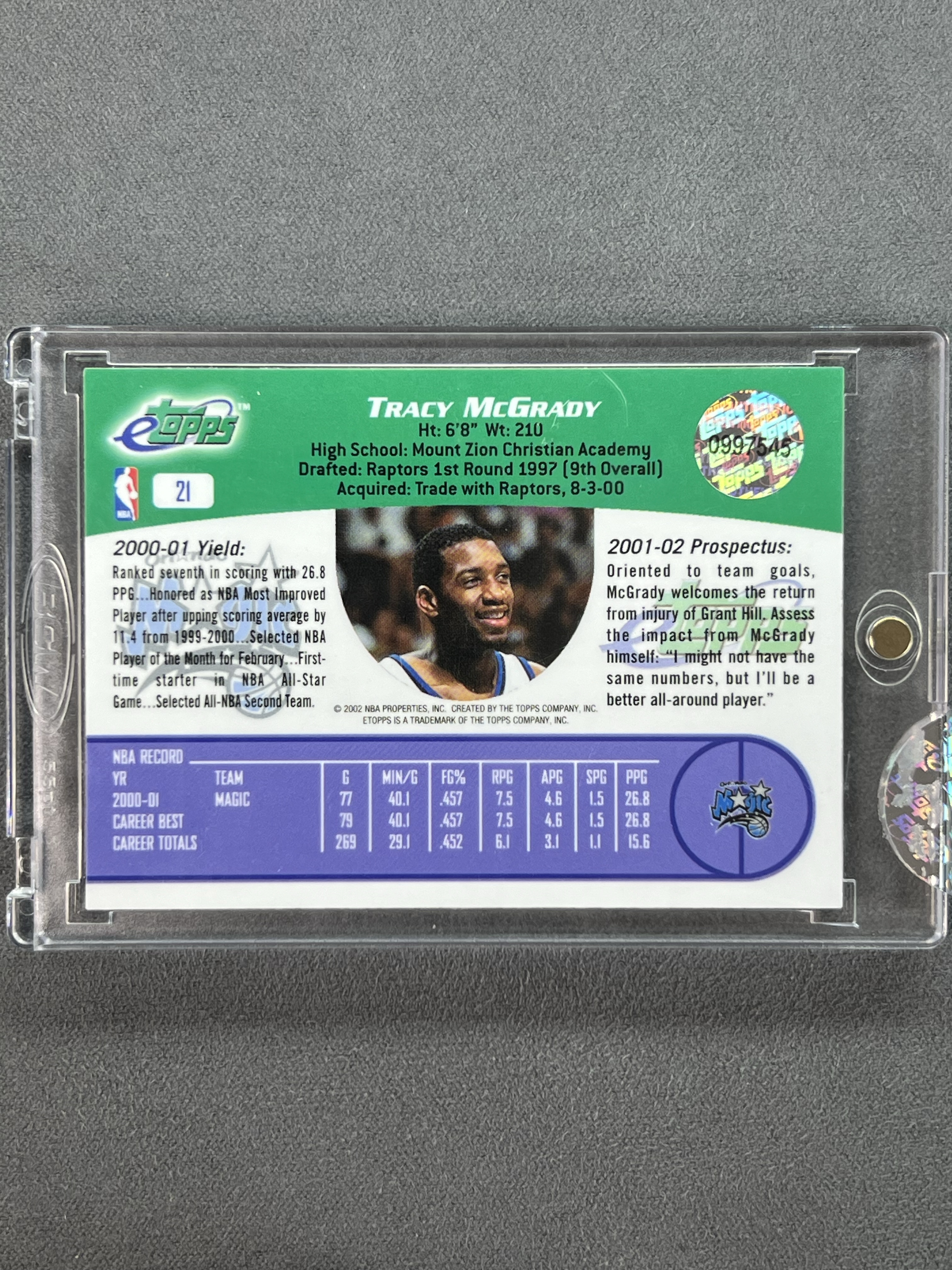 2001-02 Topps Basketball Tracy McGrady 特雷西 麦克格雷迪 麦迪 老卡 银折 原封砖 魔术时期 传奇名宿 情怀必收 收藏投资凑套必备 seven
