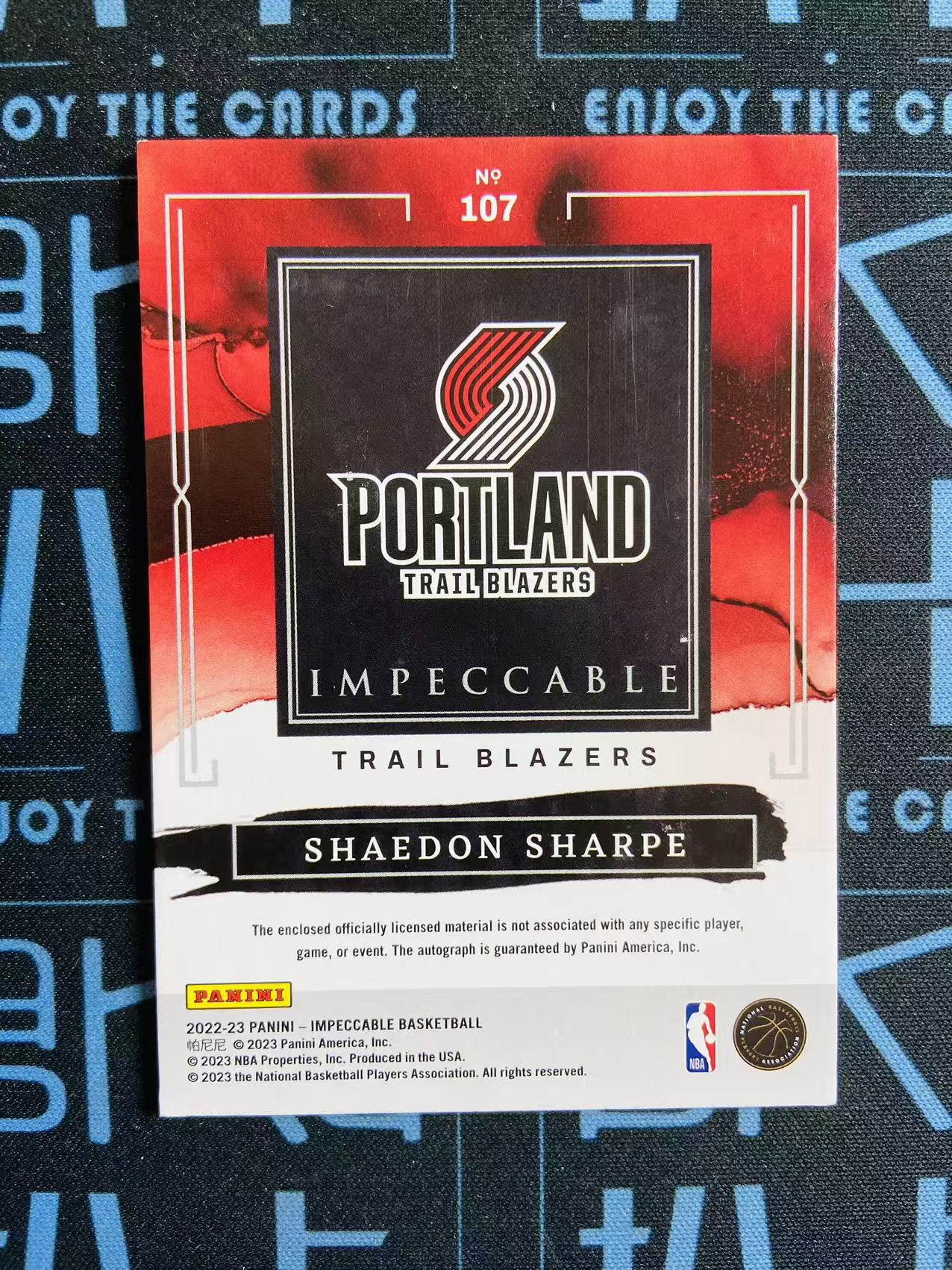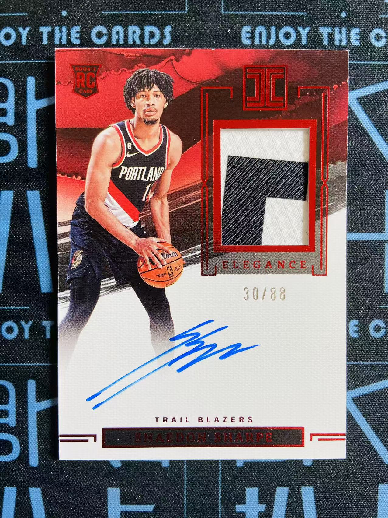 【扒卡拍卖】【拍前请看描述】2022-23 Panini Impeccable Shaedon Sharpe 小真金 谢登 夏普 开拓者 新秀RC 签字 卡签 /88编 RPA 球衣物料 亚洲版 瑕疵如图 投资收藏必备 靠杯1209BK02