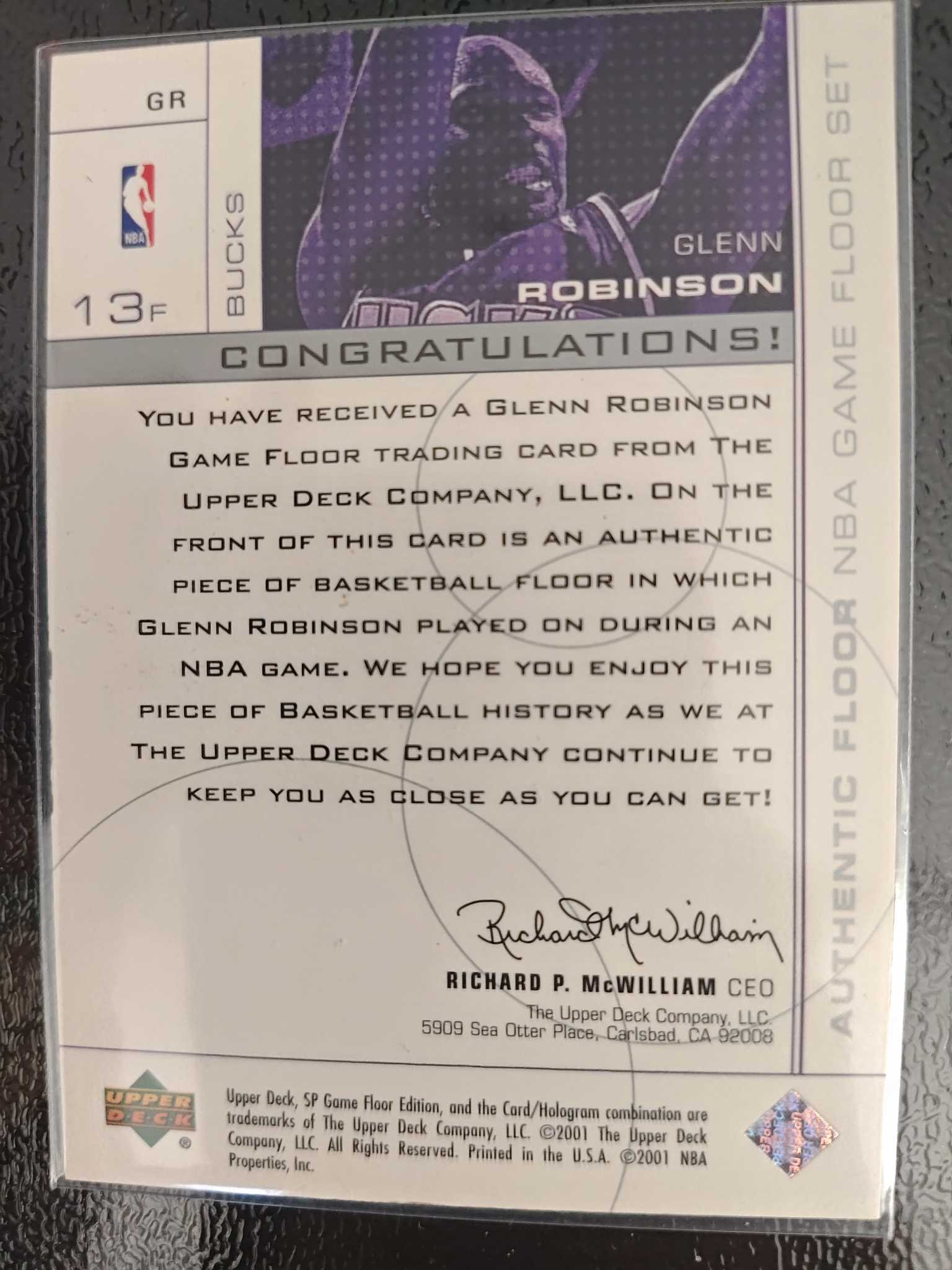 2001 Upper Deck SP Game Floor Edition Glenn Robinson 雄鹿 格伦 罗宾逊  地板切割 实物