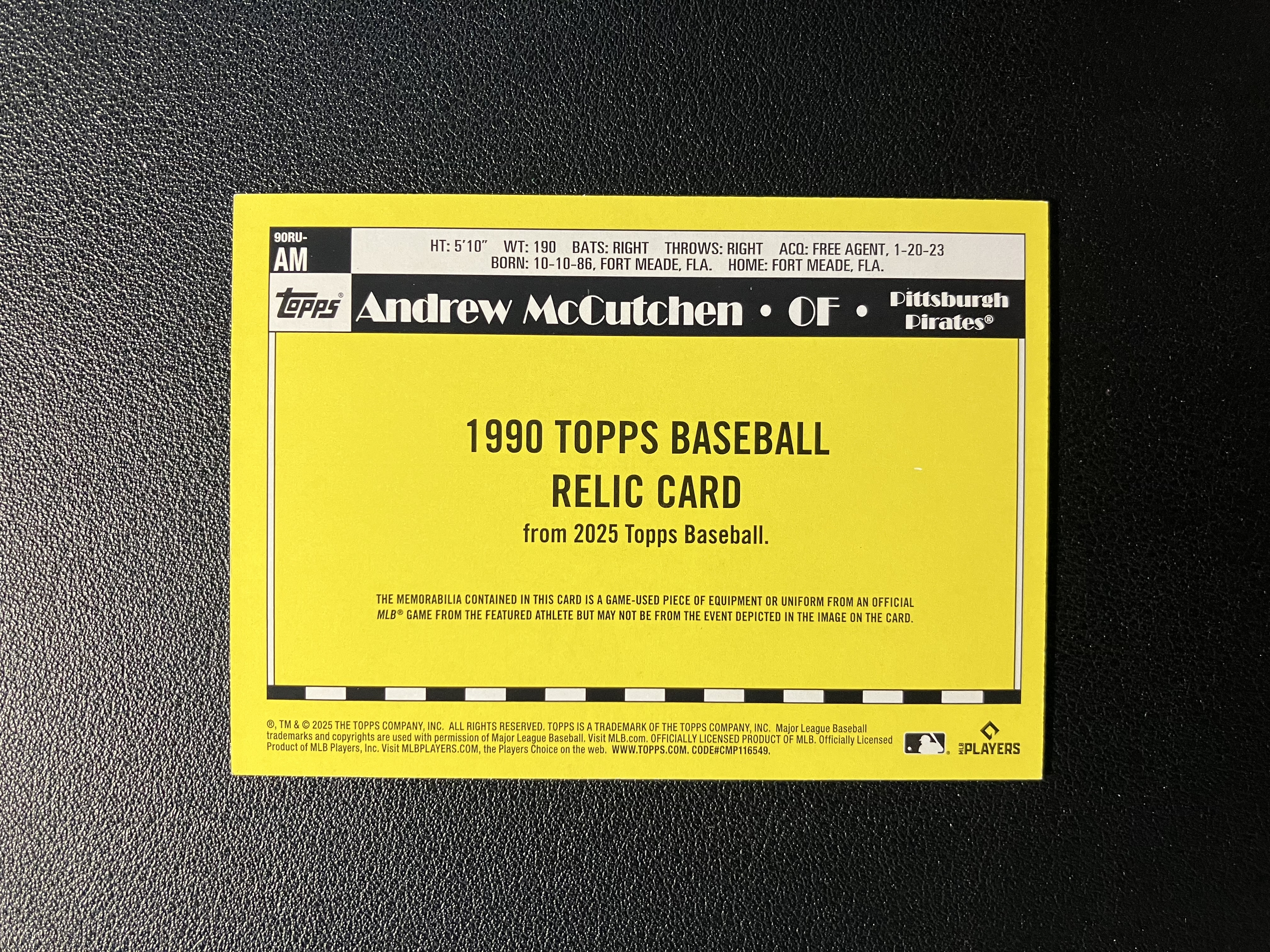 2025 Topps Update Series Andrew McCutchen 安德鲁-麦卡琴 1990复古物料 35周年 落场切割 ‌‌匹兹堡海盗队 卡品如图 B227