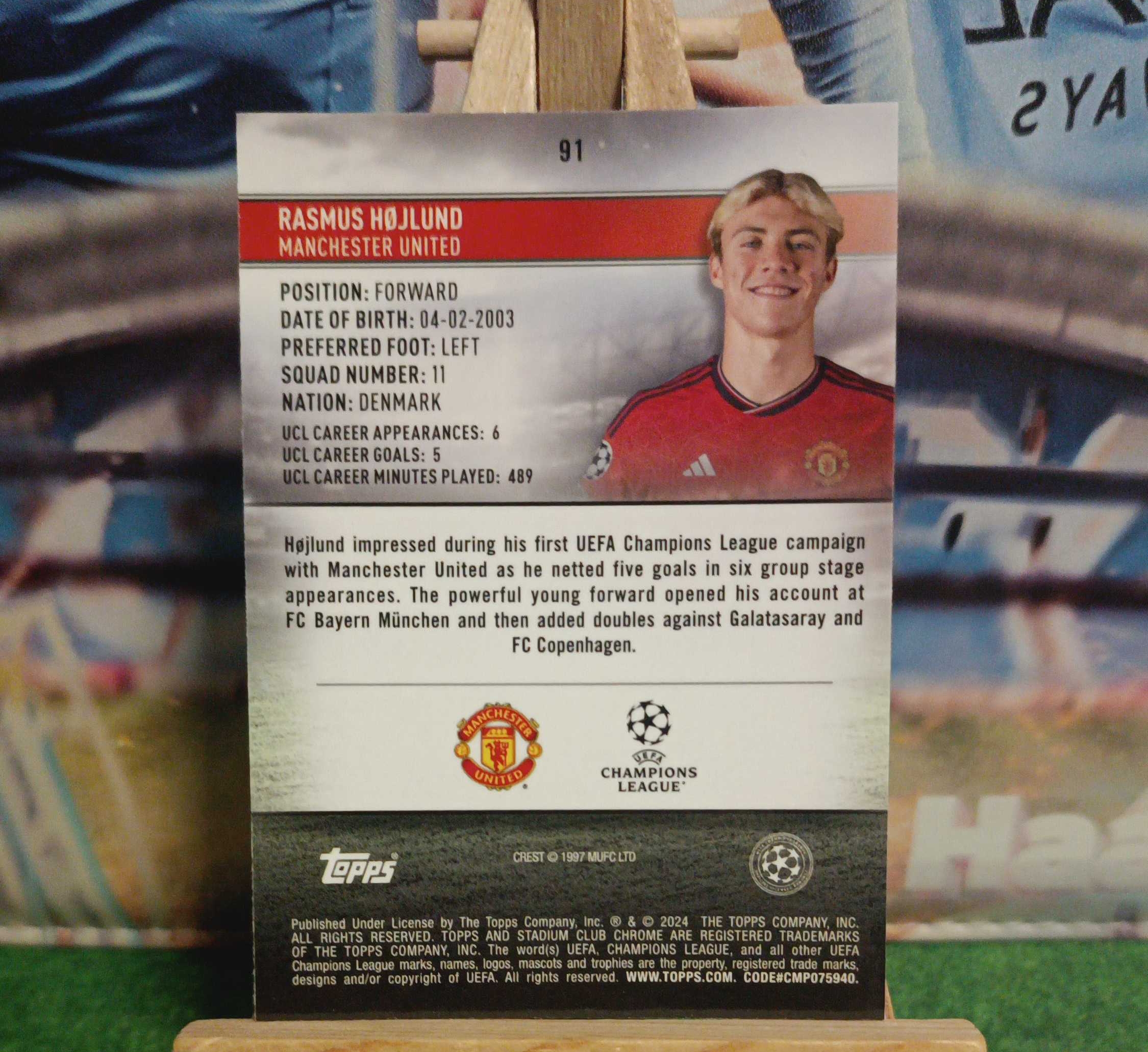 2024-25 Topps Chrome Rasmus Hojlund 欧冠 竞技场 曼联 霍伊伦德 175编 蓝折 那不勒斯 状态火热 卡品如图