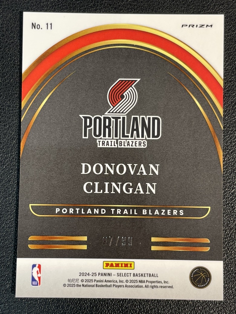 2024-25 Panini Select Donovan Clingan RC 594 多诺万 克林根 开拓者 新秀 Future 特卡 折射 红折 99编 卡品如图 M哥
