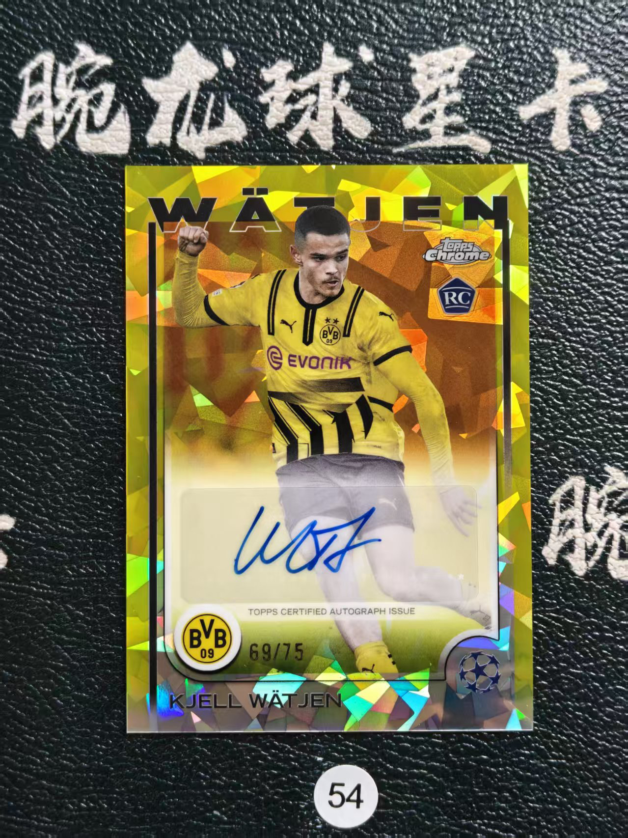 2025 【腕龙拍卖 接代卖】 腕龙xcxAW7 Topps Chrome 欧冠 蓝宝石 魏特延 多特蒙德 RC新秀 金碎冰折 69/75编 签字 墨迹如图 KJELL WÄTJEN 卡品如图