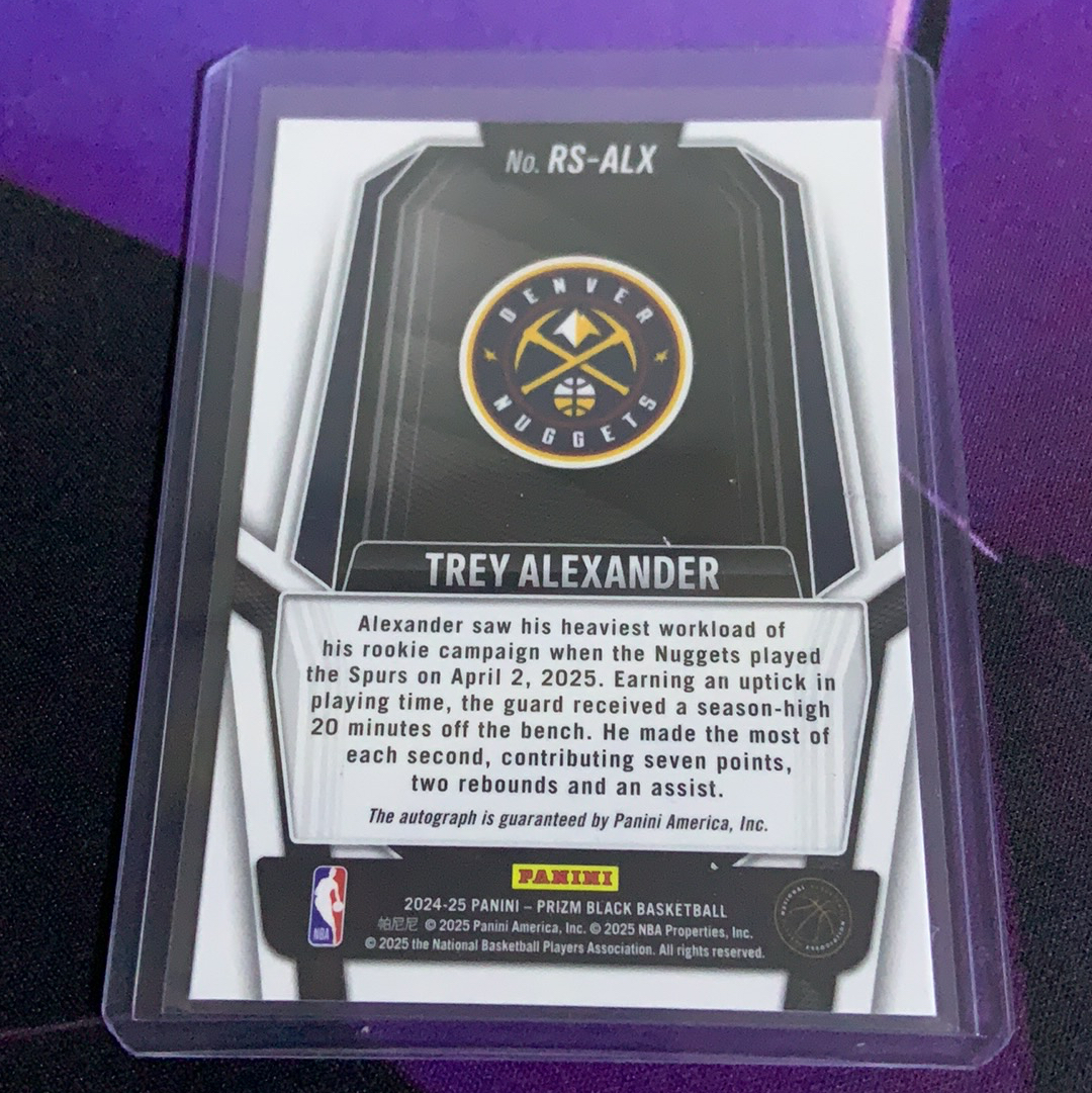 2024-25 Panini prizm black Trey Alexander 掘金 特雷 亚历山大 新秀RC 签字 签名 专收必备 微瑕如图 亮-接上拍