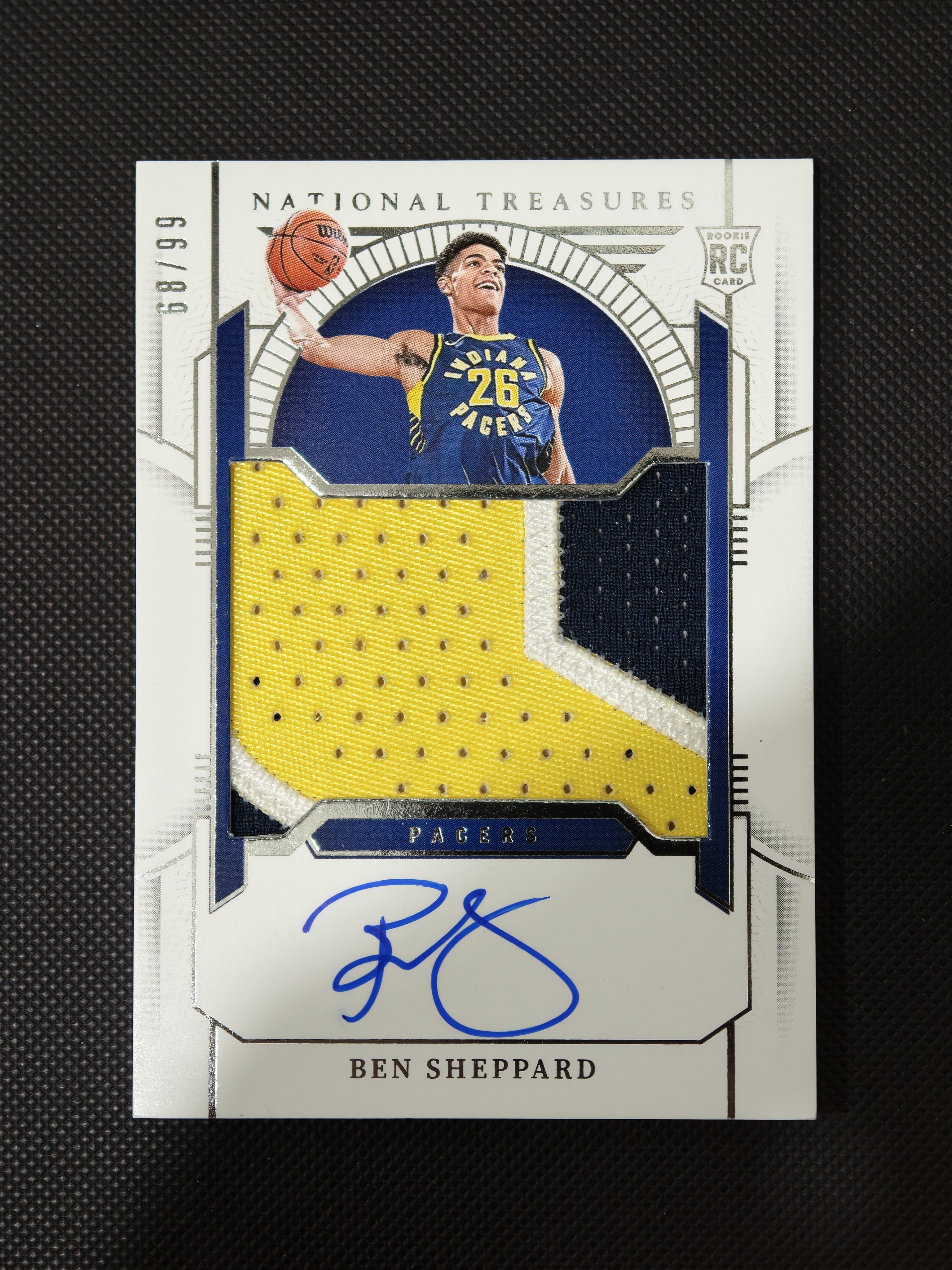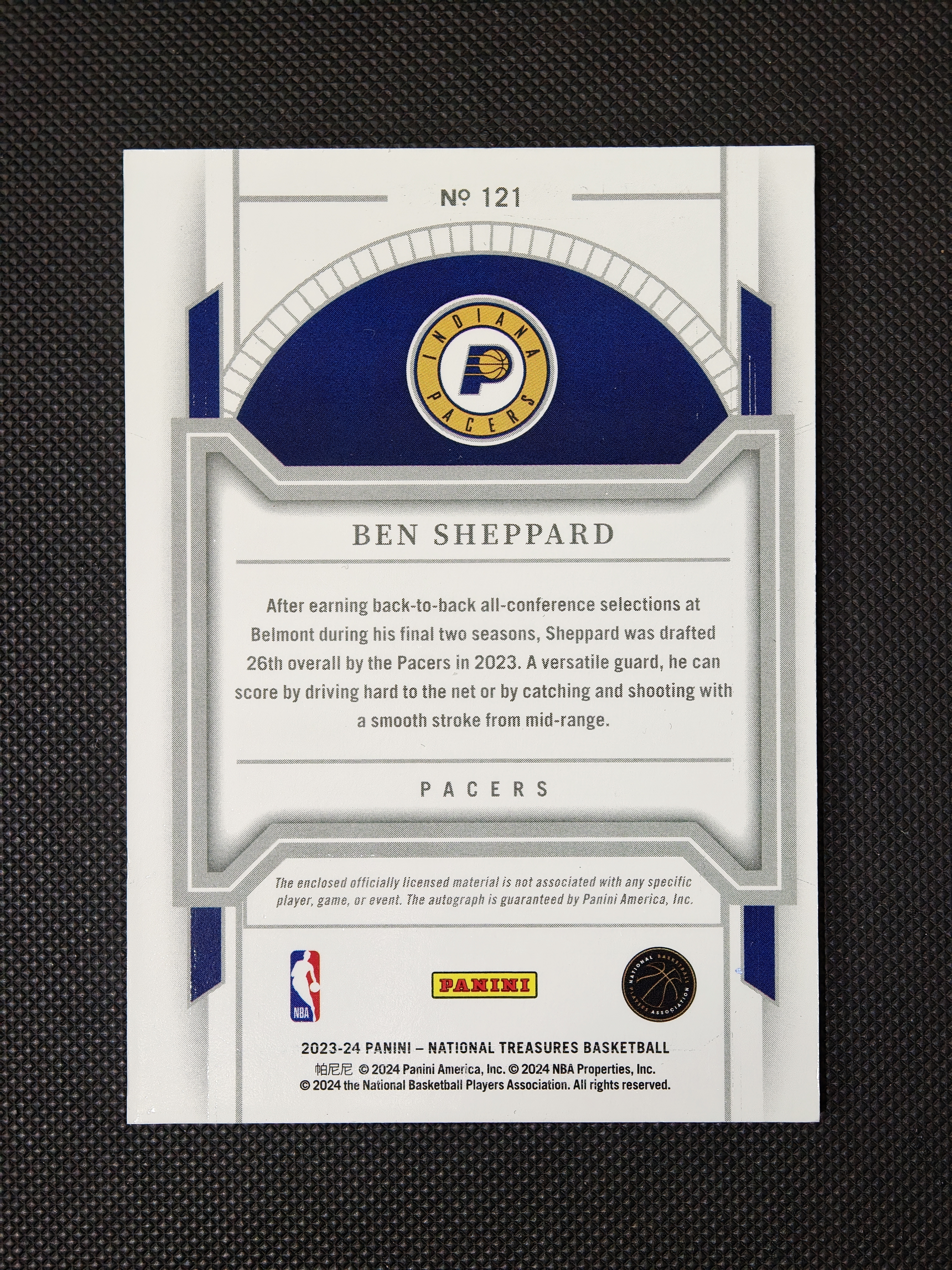 2023-24 Panini National Treasures Ben Sheppard RC 步行者首发新秀 本 谢泼德 本谢泼德 99编国宝正RPA 卡签三色切割 内史密斯受伤机会增加 卡品如图