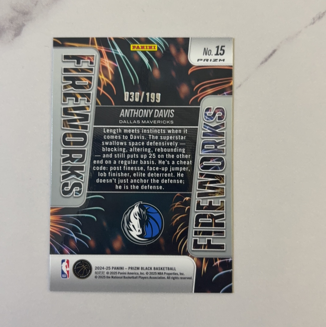 2025 Panini Prizm Anthony Davis 篮球pz系列 达拉斯独行侠 中锋 安东尼 戴维斯 30/199编 特卡 收藏必备 卡品如图 暴风熊代拍 游子
