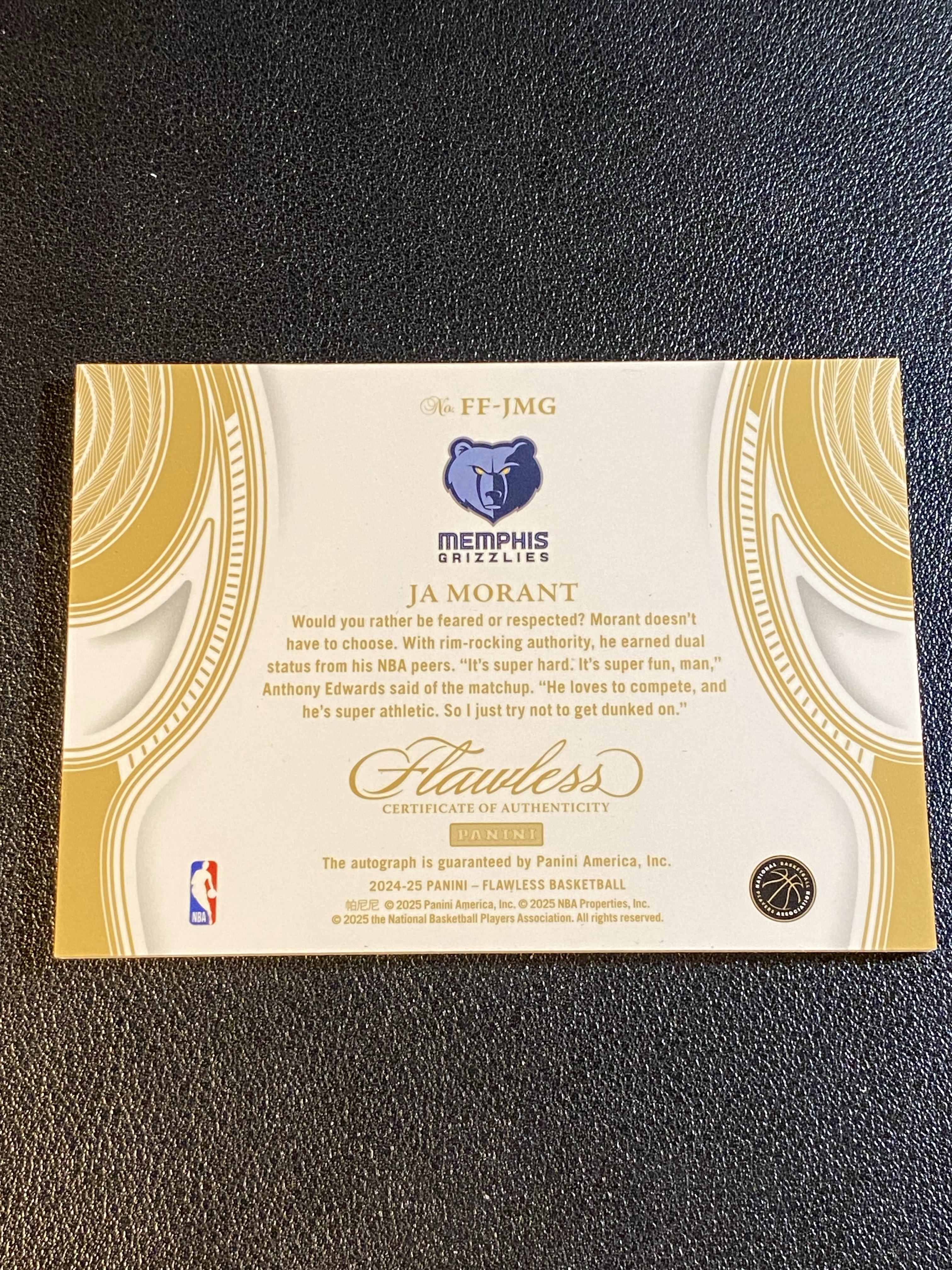 2024-25 Panini Flawless Ja Morant 手提系列 灰熊 贾 莫兰特 圣枪游侠 绝杀签 签字 卡签 完美签 金闪 4/10超低编 绝美选图 微微印 送砖 拍卡请看描述 「K」
