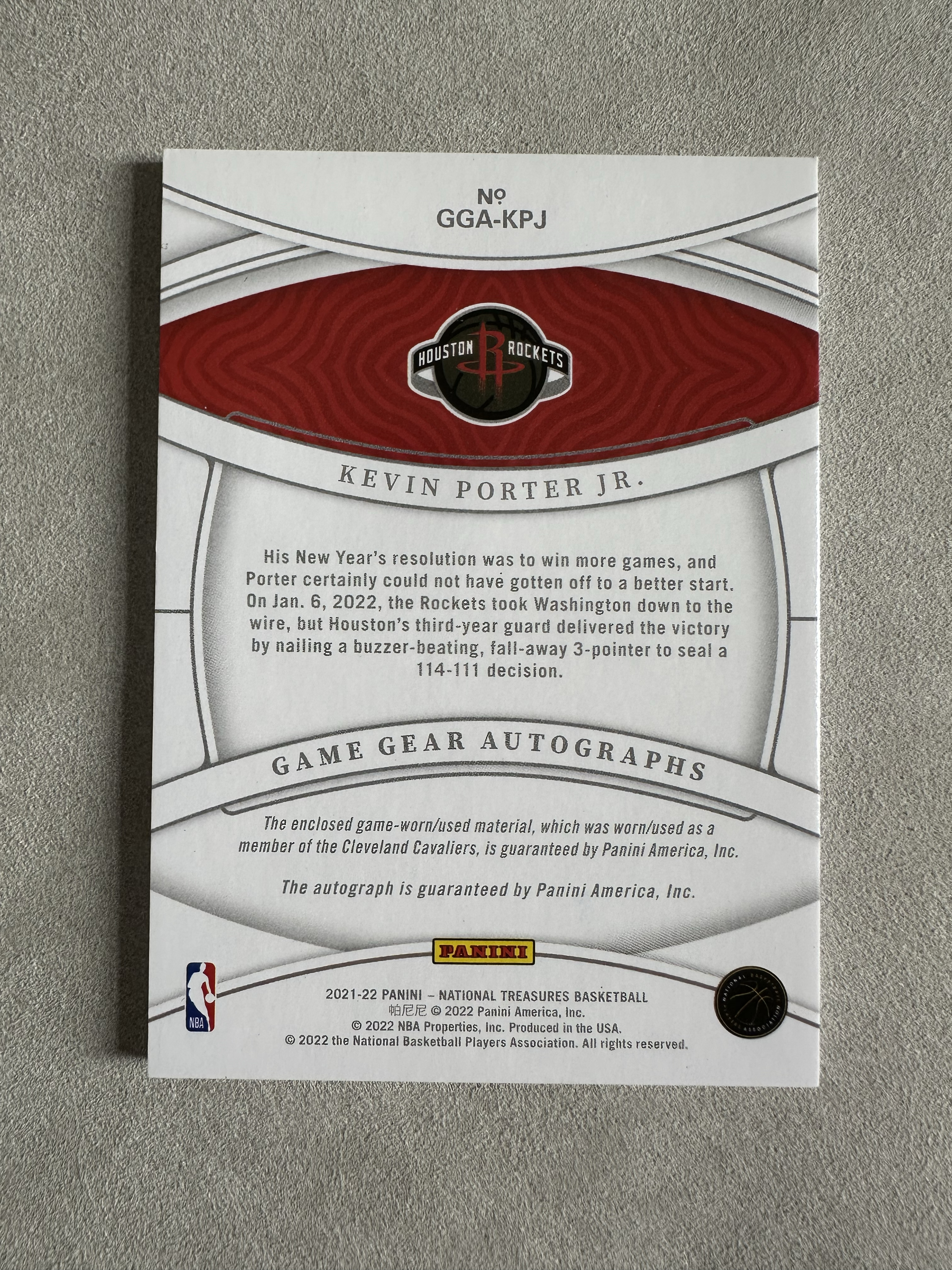 2021-22 Panini National Treasures Kevin Porter Jr. 火箭队 小凯文波特 国宝 签字 99编 球衣物料切割 卡量稀少 凑套必备(欧总01)