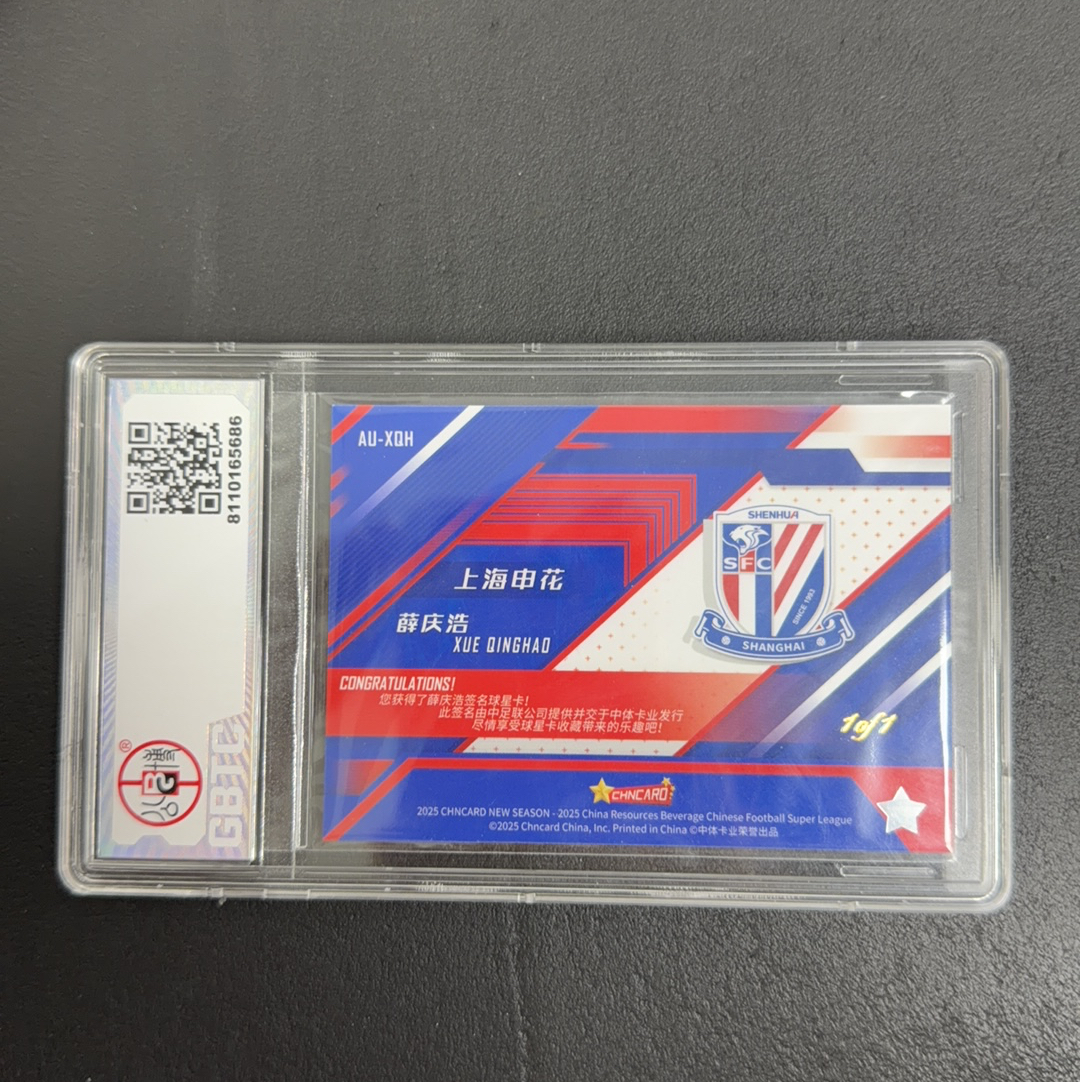 2025 中体卡业 新赛季 上海申花 薛庆浩 1/1编 红折 签字 签名 公博评级9.5分签字10分