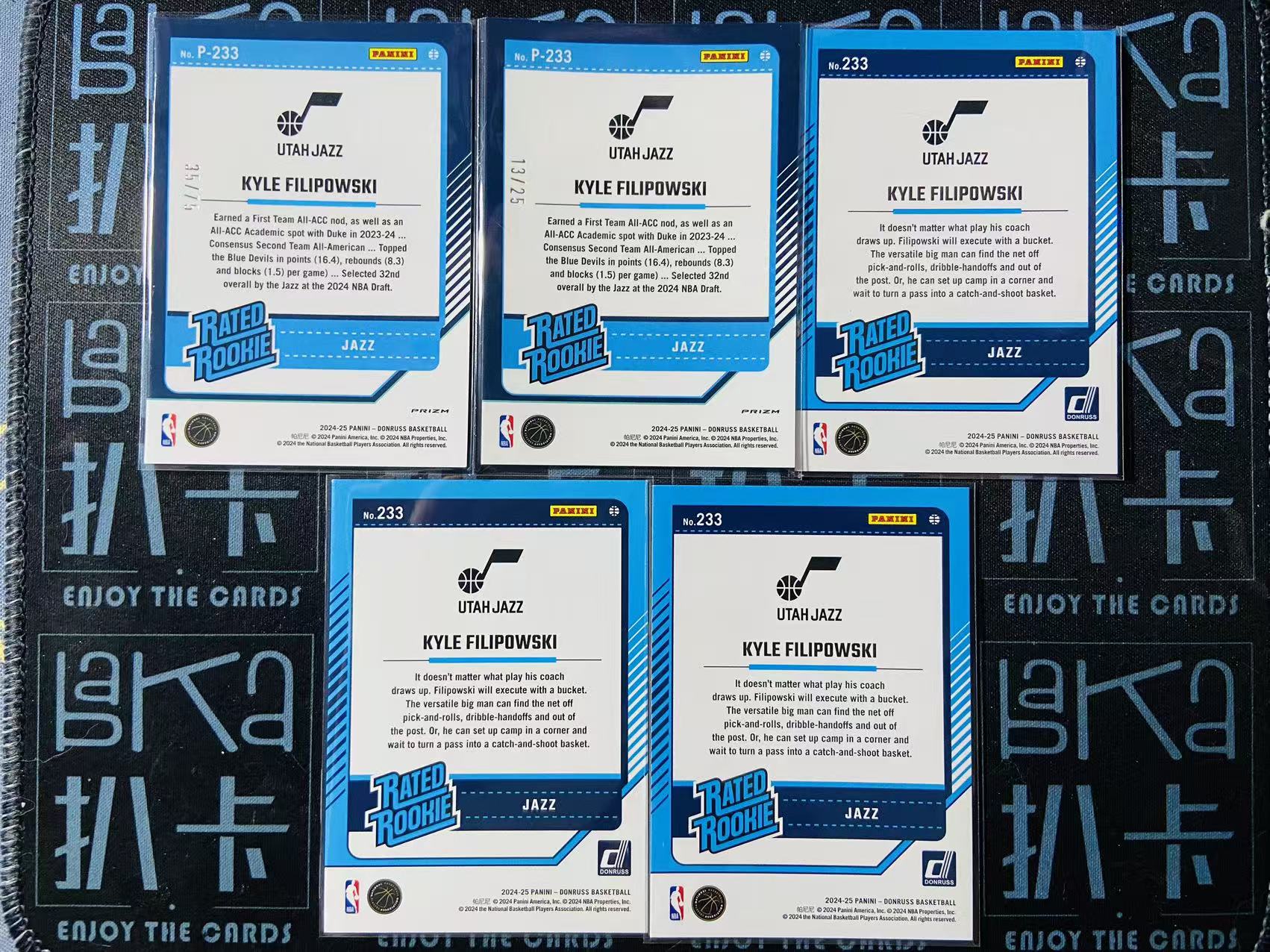【扒卡拍卖】2024-25 Donruss 杜蕾斯 Kyle Filipowski 菲利波夫斯基 新秀RC /99编/199编/149编/75编/25编 红折橙折红佛光折银折折射 爵士 5张打包 师门1209BK66【拍前请看描述】
