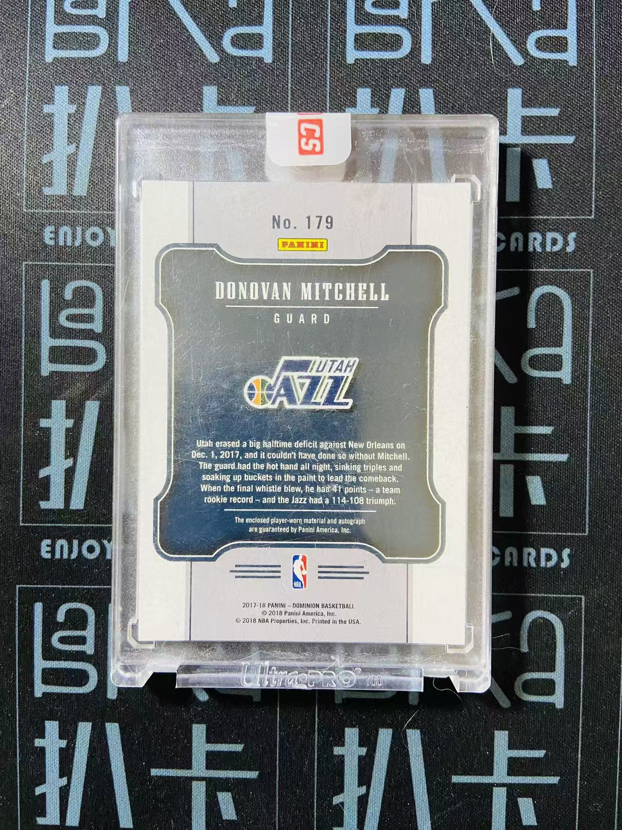 【扒卡拍卖】2017-18 Dominion Donovan Mitchell 多诺万米切尔 新秀RC /199编 签字卡签 球衣物料 RJA 亲穿 爵士 收藏必备 无产者1212BK66【拍前请看描述】
