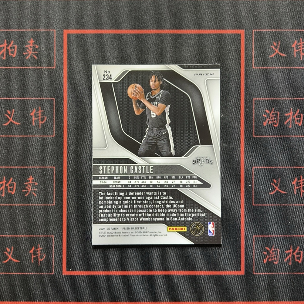2024-25 Panini Prizm Stephon Castle RC 【义伟卡淘拍卖】斯蒂芬 卡斯尔 马刺 新秀 RC正新秀 银折 (不保卡品)收藏必备 瑕疵如图