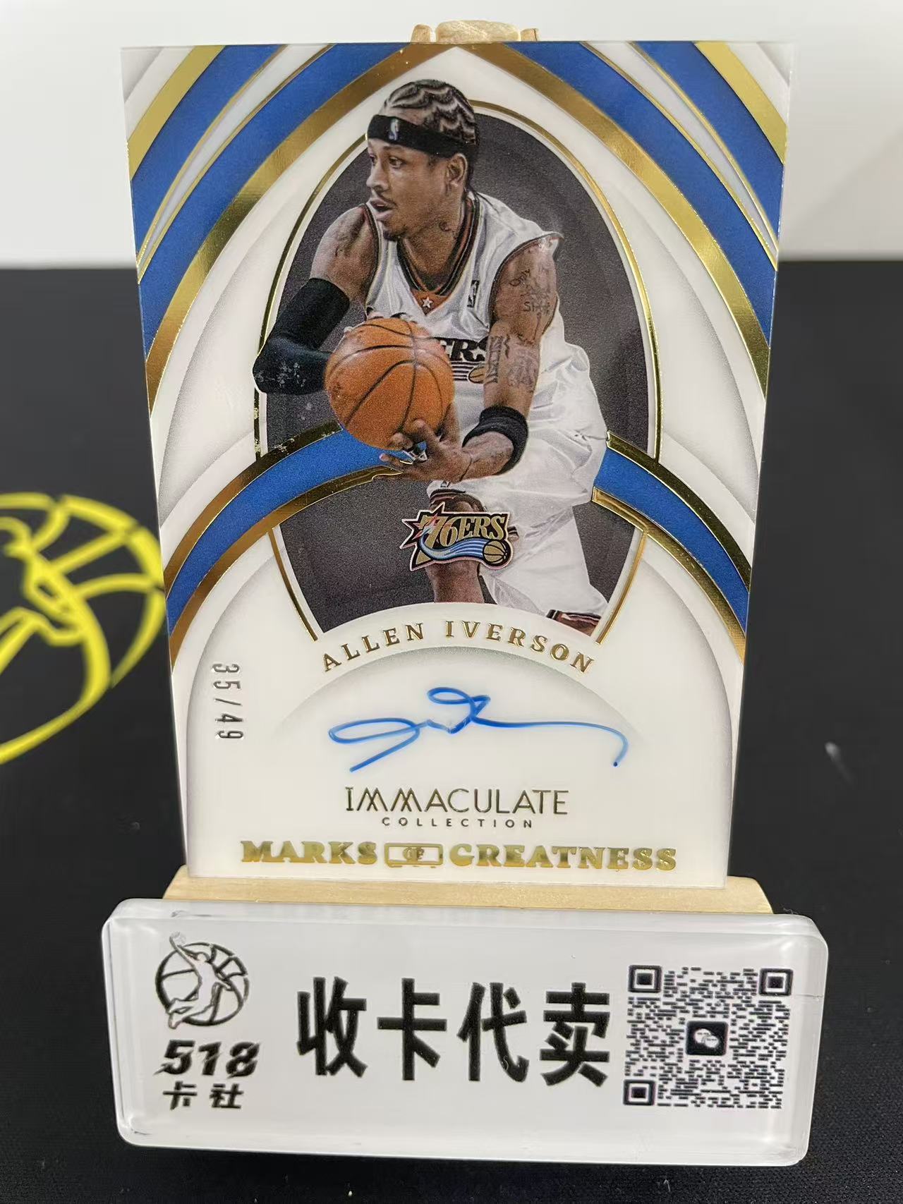 【518代卖提前预付超85%】 2021-22 Panini Immaculate Allen Iverson76人 爱咪咪 阿伦 艾弗森 答案 AI 四大分卫 /49编 伟大印记签 镜面 hc1