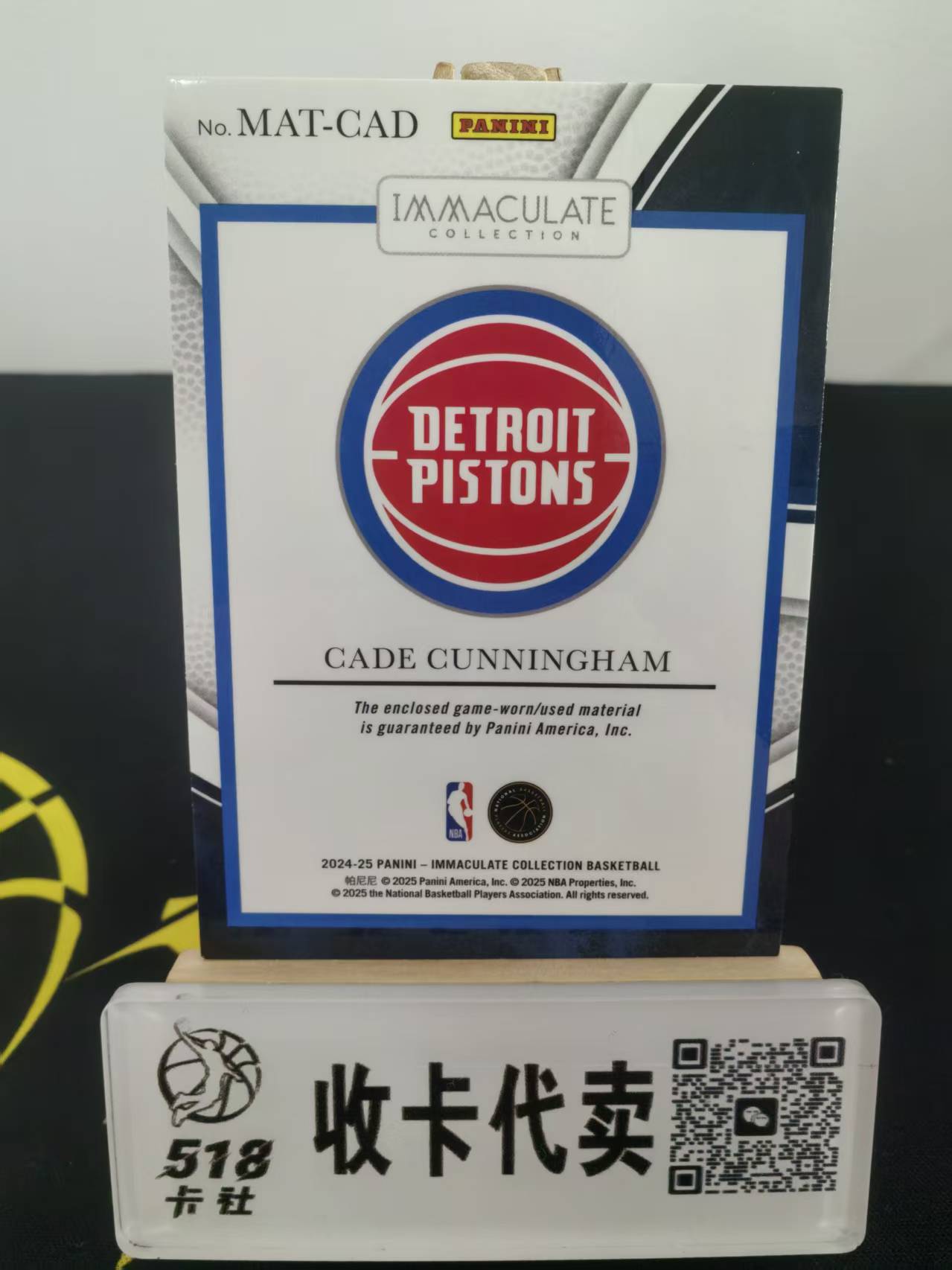 【518代卖提前预付超85%】2024-25 Panini Immaculate Cade Cunningham CC 活塞 凯德 康宁汉姆 爱咪咪 /99编 小窗球衣物料patch 猪猪来袭
