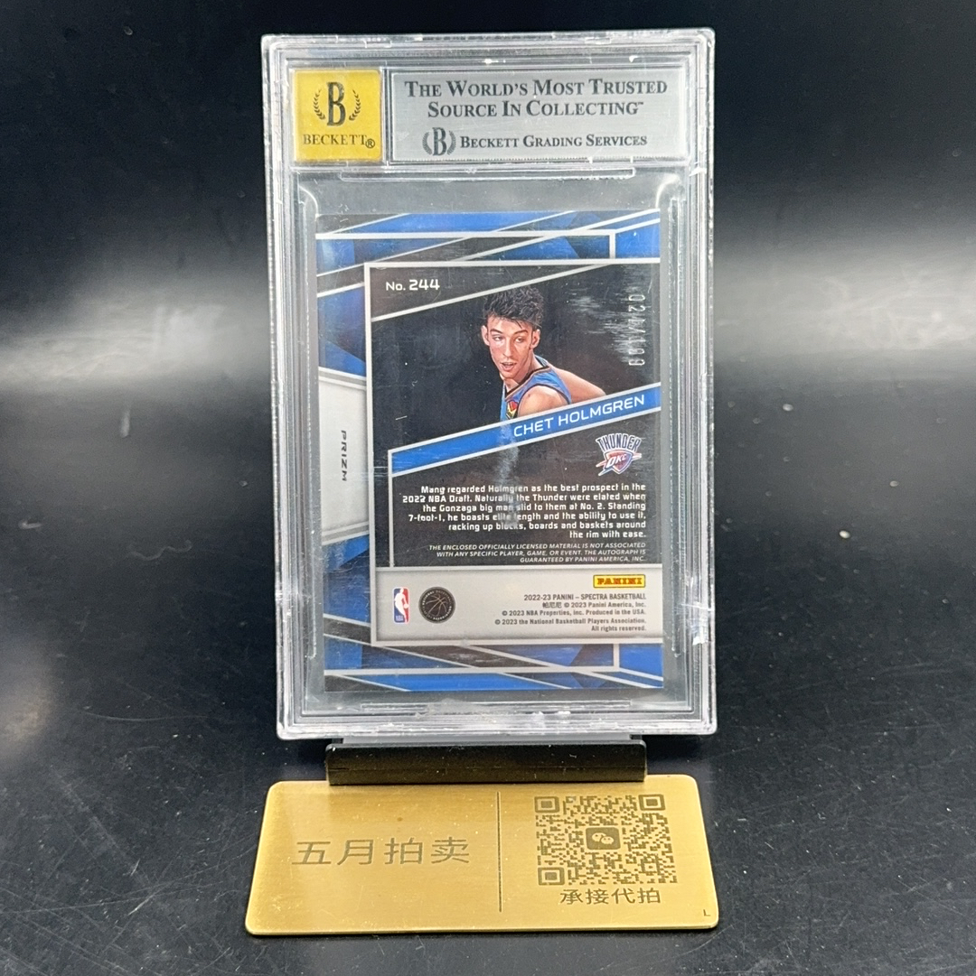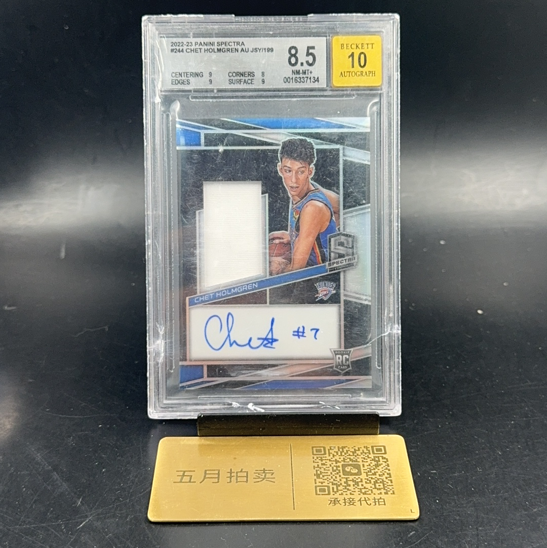 2022-23 Panini Spectra Chet Holmgren RC 【五月拍卖】切特霍姆格伦 新秀 光谱 卡签签字 RJA背号签 199编 雷霆 bgs10/8.5 微瑕呆Gzheng