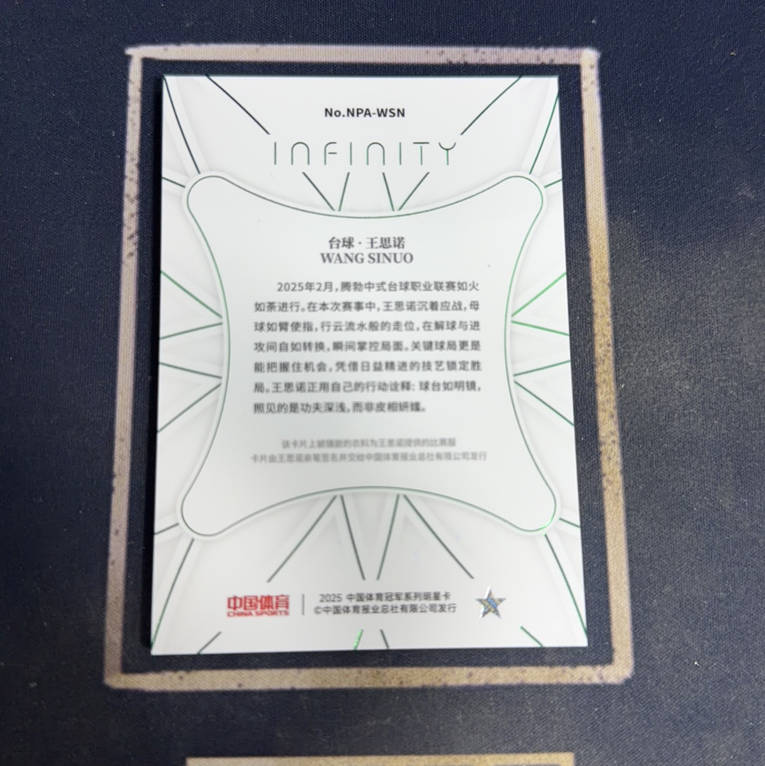 2025 中国体育 infinity 无限系列 王思诺 台球 FS 新秀 RC 2/5编 绿版 RJA 实物比赛服切割 签字 卡签 国人骄傲 专收收藏 deng165