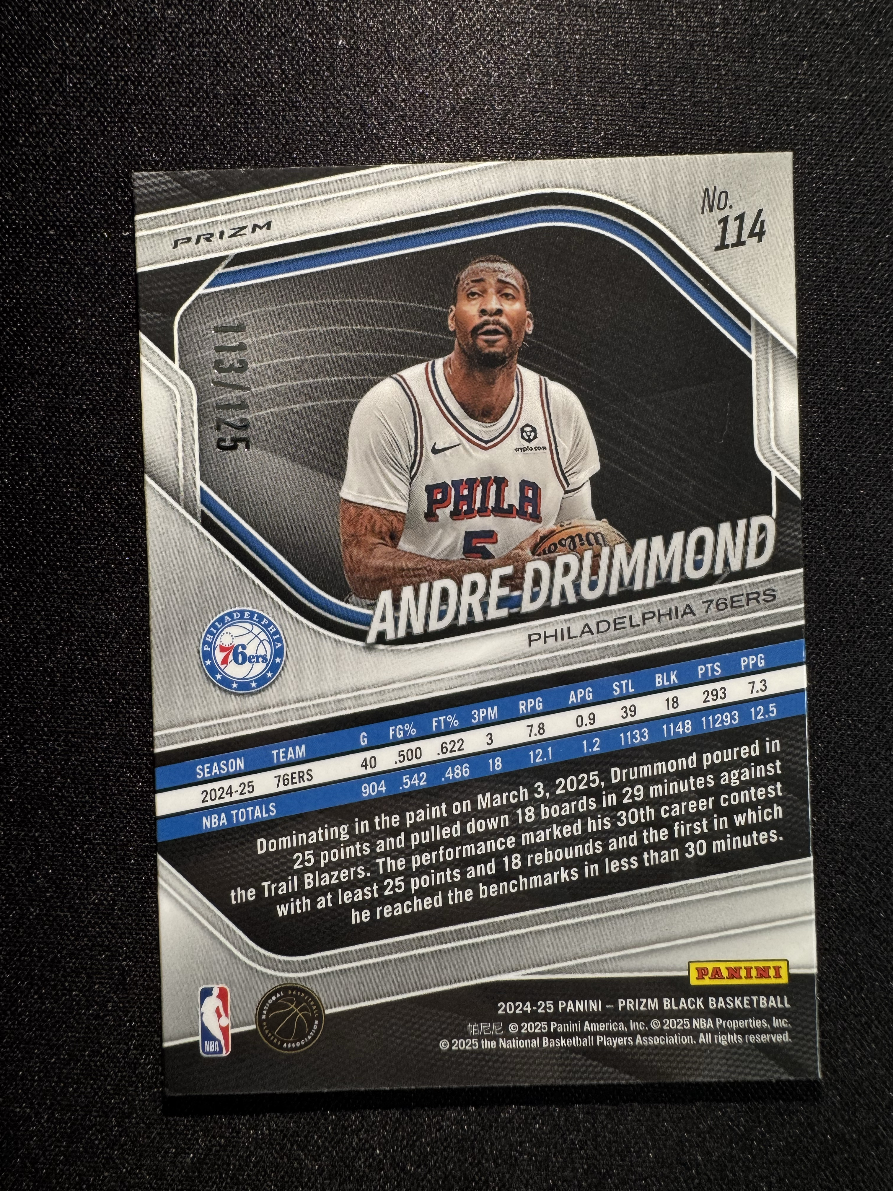 2024-25 Panini Prizm Andre Drummond PZ Black 76人 安德烈 德拉蒙德 /125编 蓝碎冰折 base 卡品如图 【四小只】
