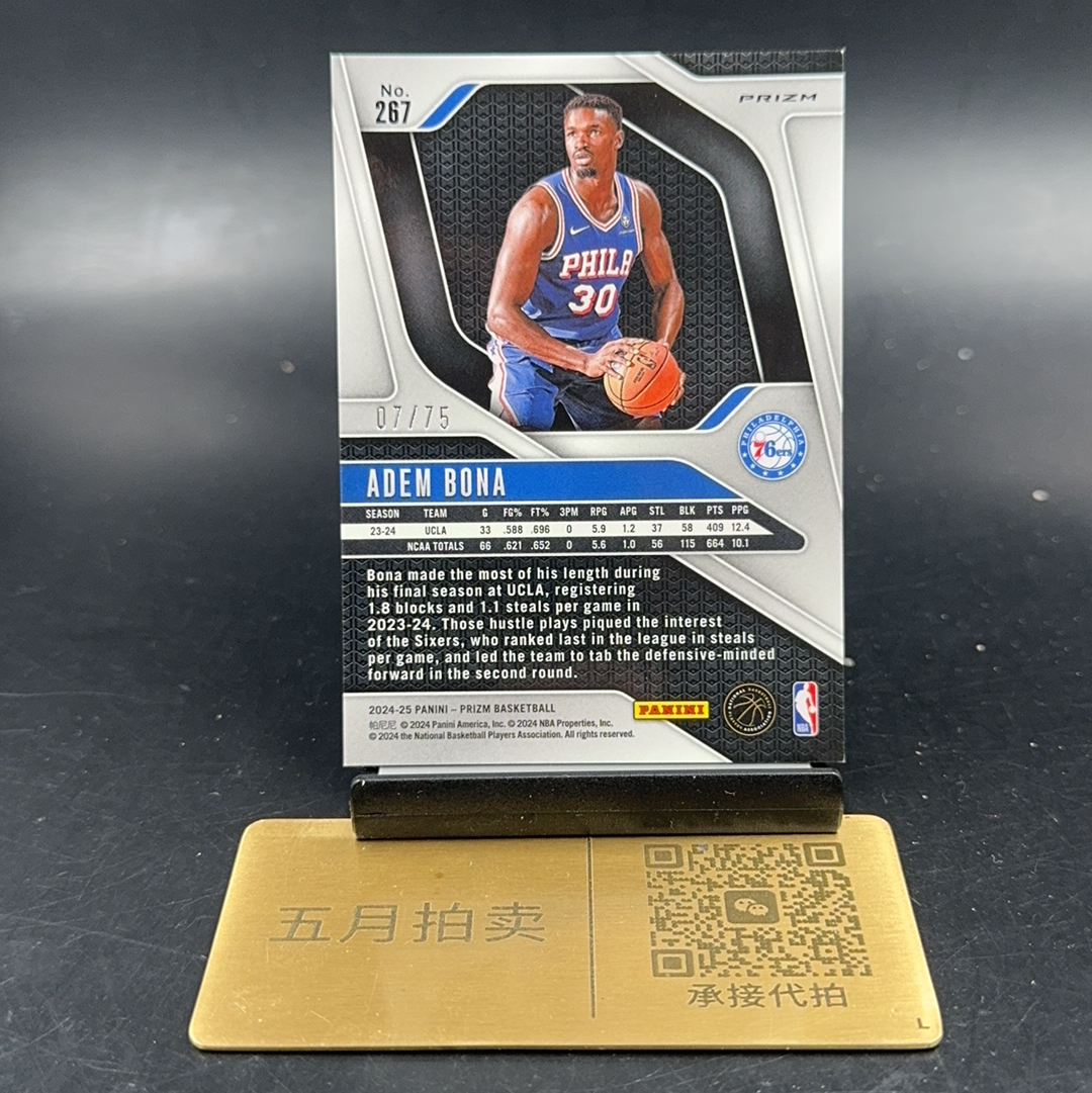 2024-25 Panini Prizm Adem Bona RC 【五月拍卖 顺丰空运】pz 博纳 新秀 75编 紫泡泡折 折射 卡品如图 寿光23