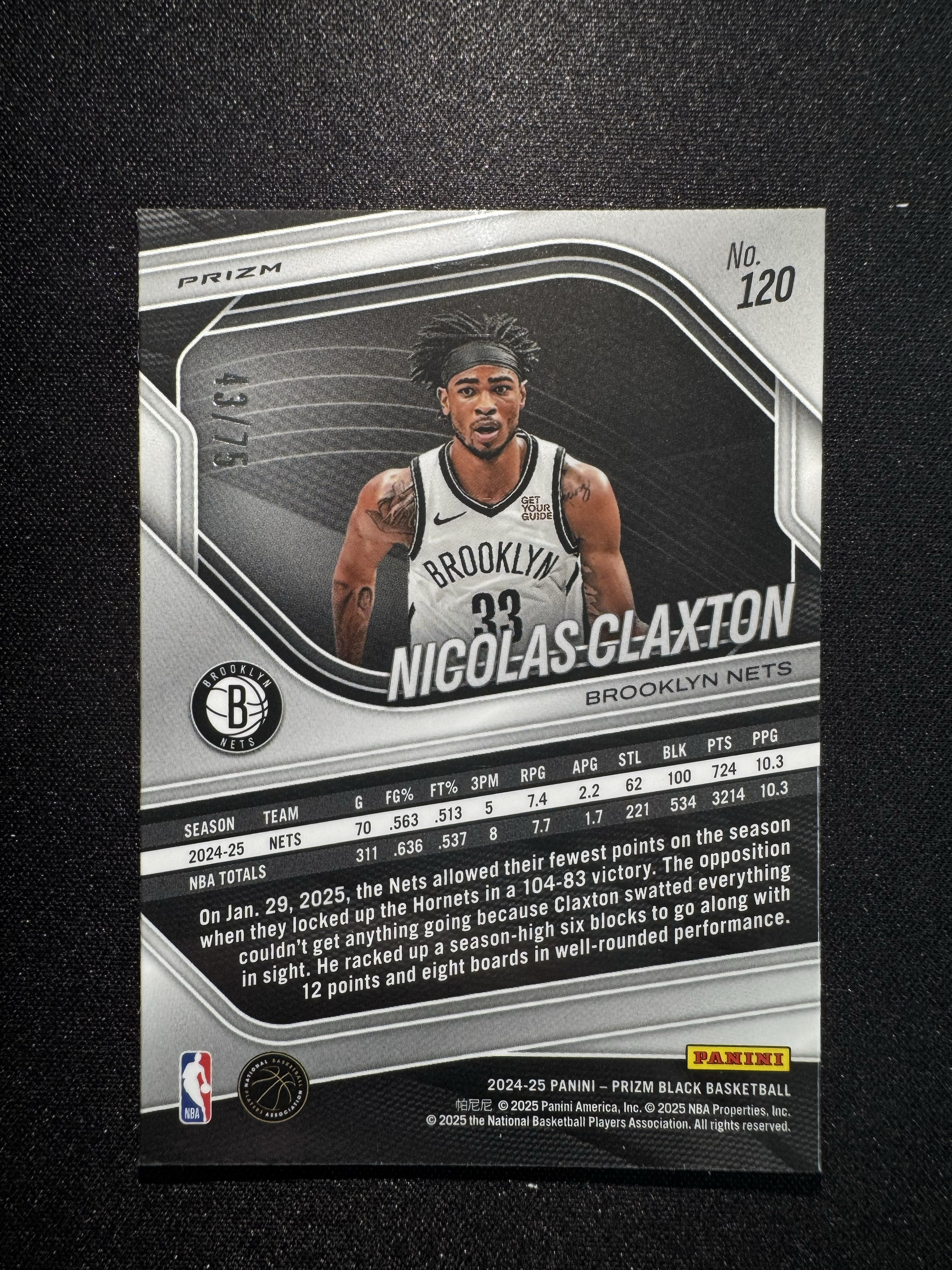 2024-25 Panini Prizm Nicolas Claxton Prizm Black 篮网 尼古拉斯 克拉克斯顿 红格子折 折射 /75编 卡品如图 收藏必备【四小只】