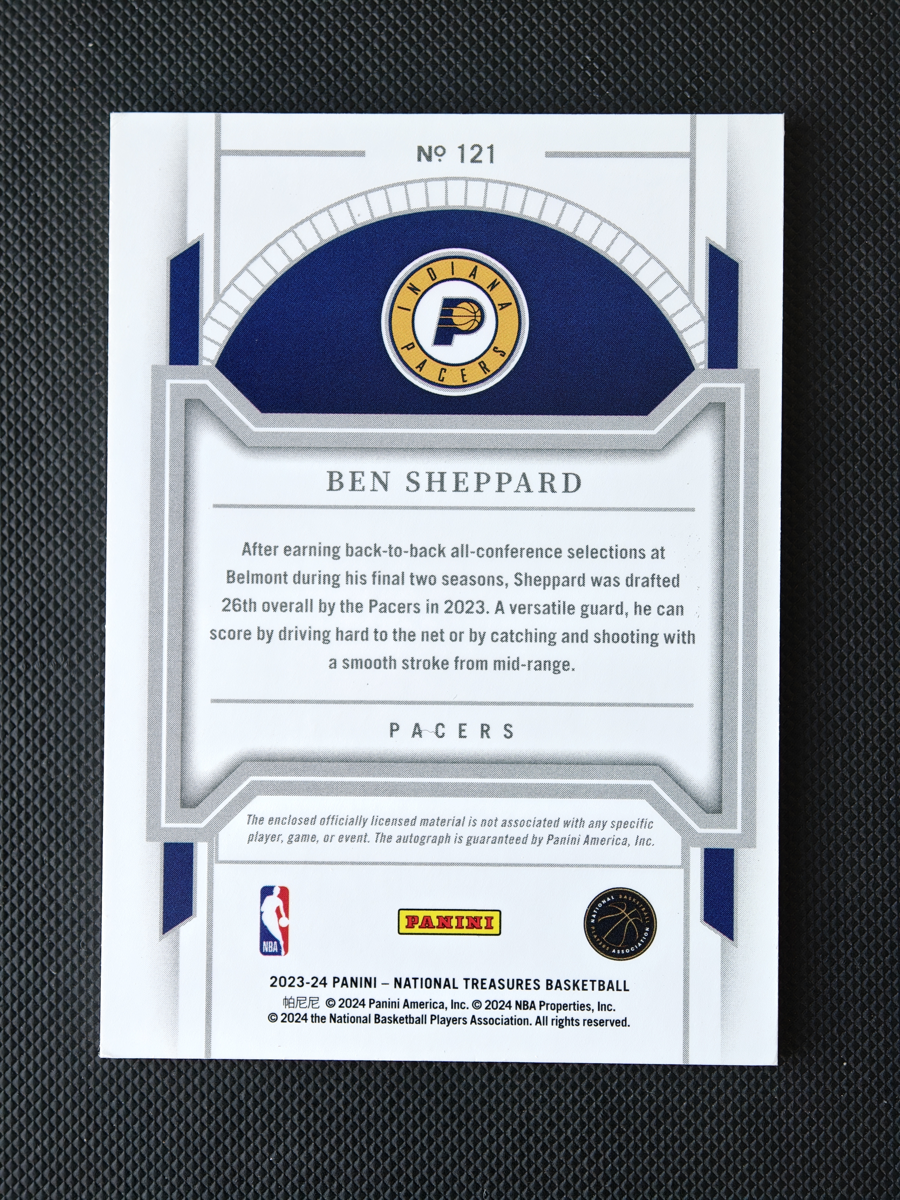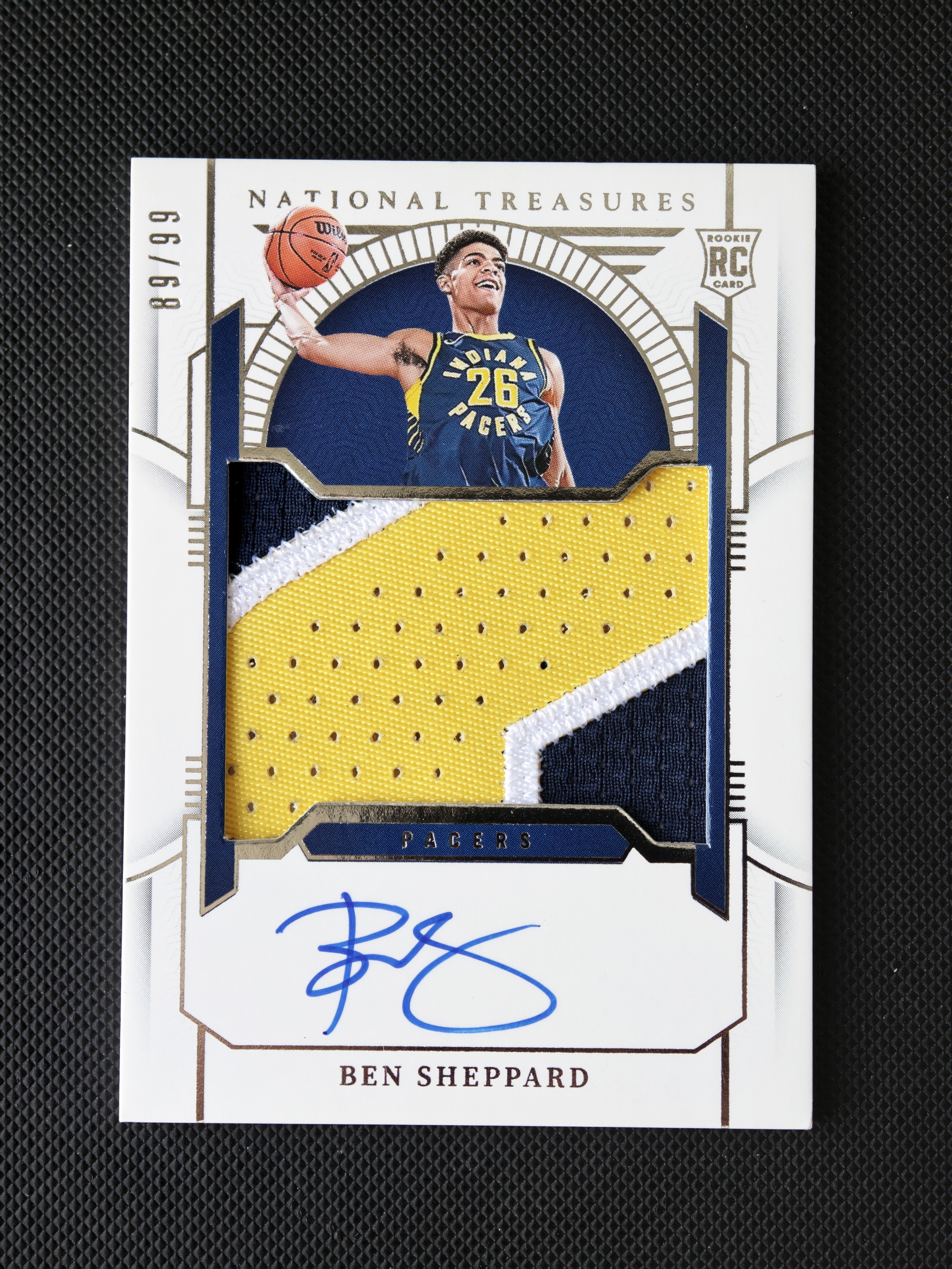2023-24 Panini National Treasures Ben Sheppard RC 步行者首发新秀 本 谢泼德 本谢泼德 99编国宝正RPA 卡签三色切割 内史密斯受伤机会增加 卡品如图