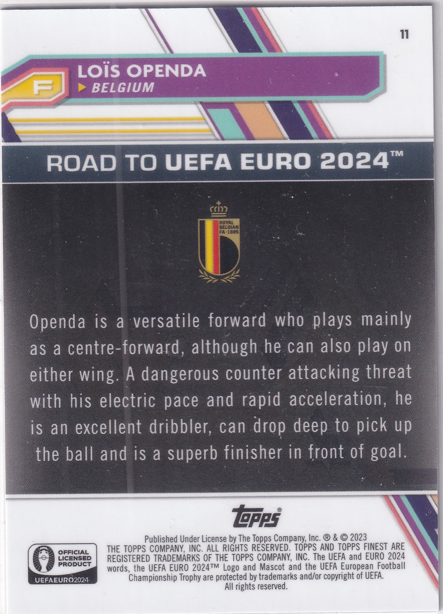 【小宝拍卖】可累积※ Lois Openda 奥蓬达 75编 国家队首秀 玫瑰金折 2024 Topps 欧洲杯Finest 比利时 Belgium MTA491378