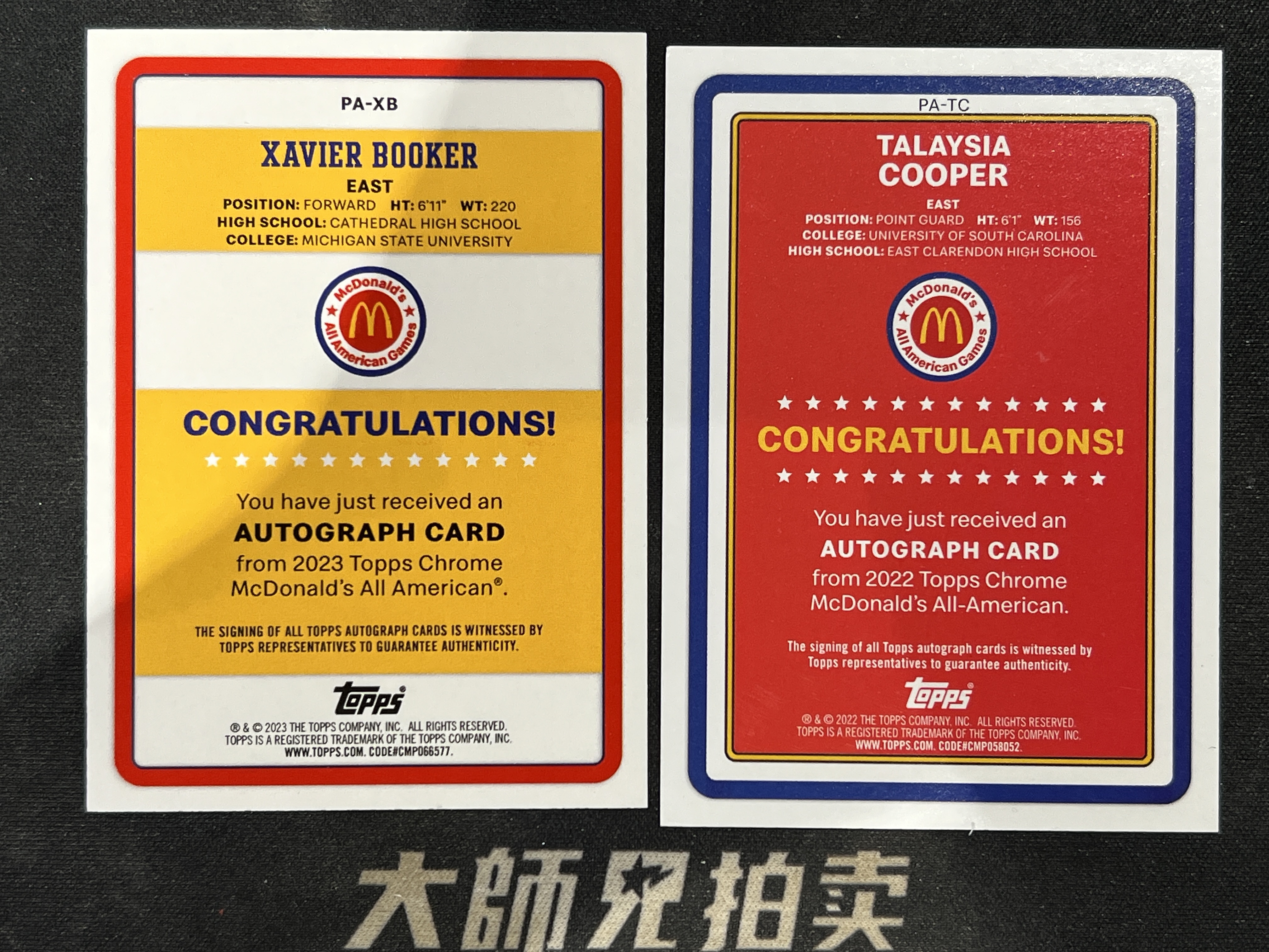 【大师兄拍卖】2023-24 Topps Chrome 麦当劳 泽维尔 布克 塔雷西亚库珀 lot打包 签字 卡签 卡品如图 -Tiger-D