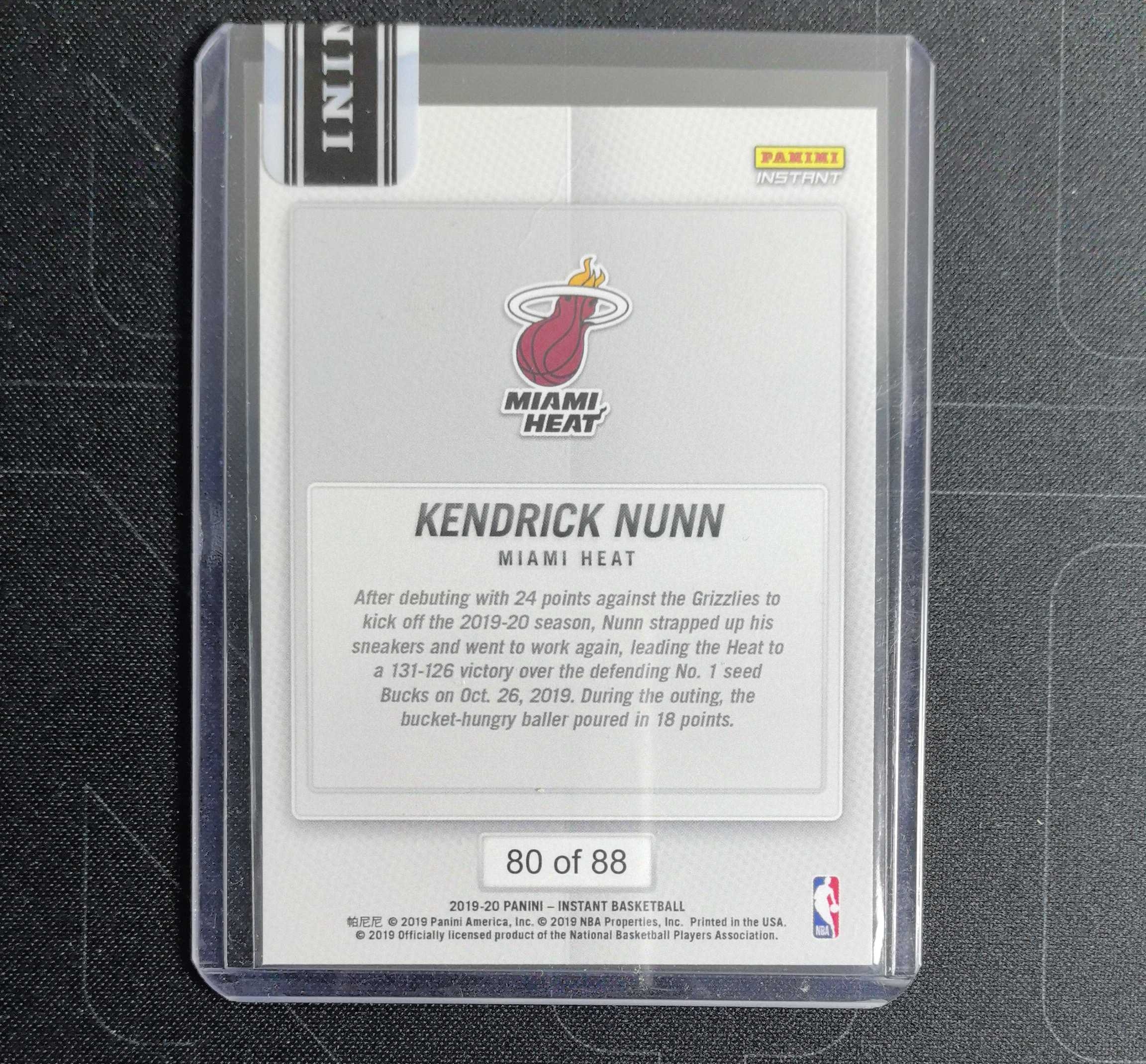 2019-20 Panini Instant Kendrick Nunn RC 热火 肯德里克 纳恩 新秀 RC 官方时刻 瞬时 特卡 88编 带编 原封卡夹 凑套必备 卡品如图