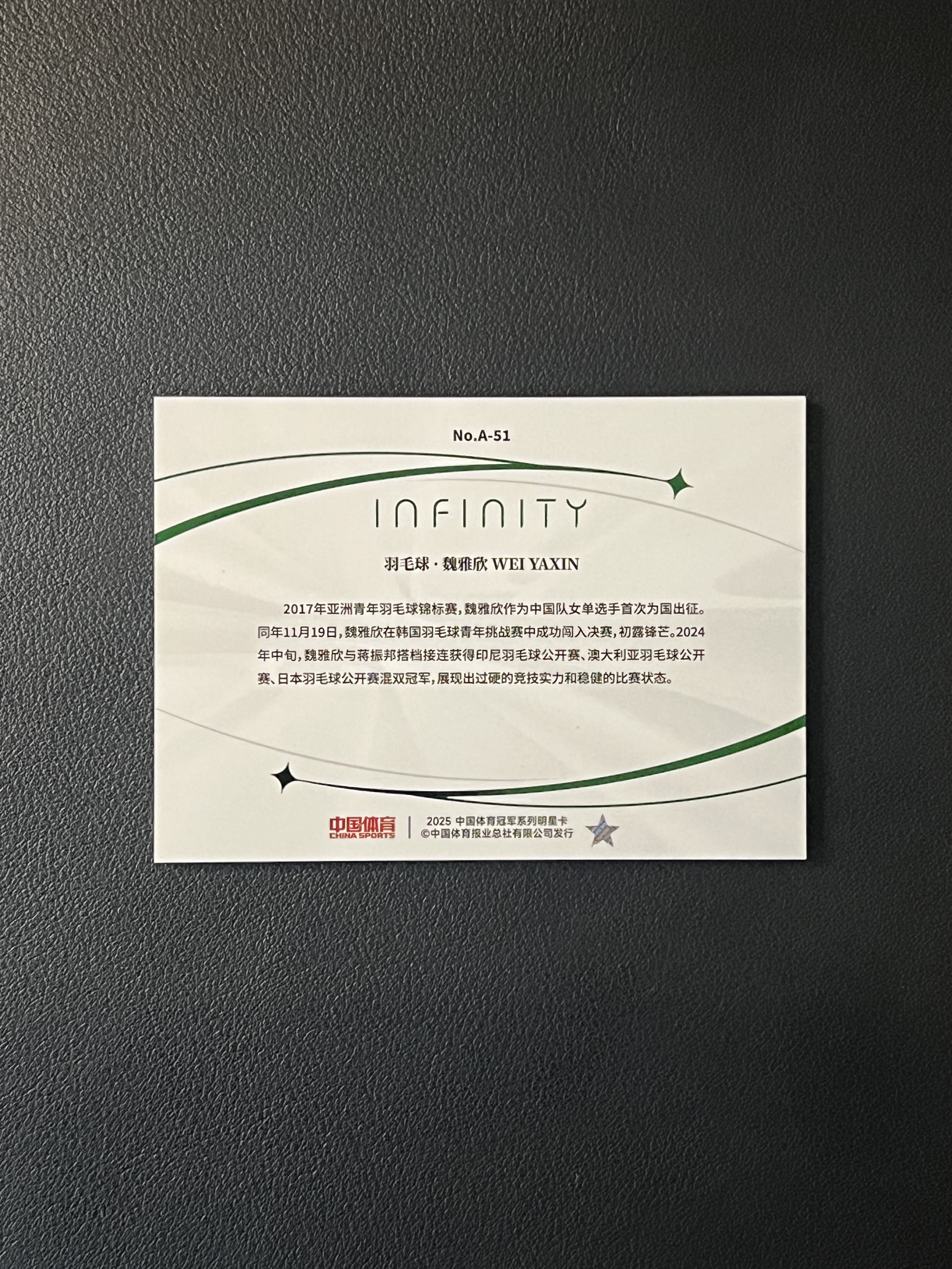 2025 奇卡 QICA Infinity 魏雅欣 中国体育 无限 魏雅欣 羽毛球 1/5编 FS标 未来之星 新秀RC 阿尔法特卡(卡品如图)