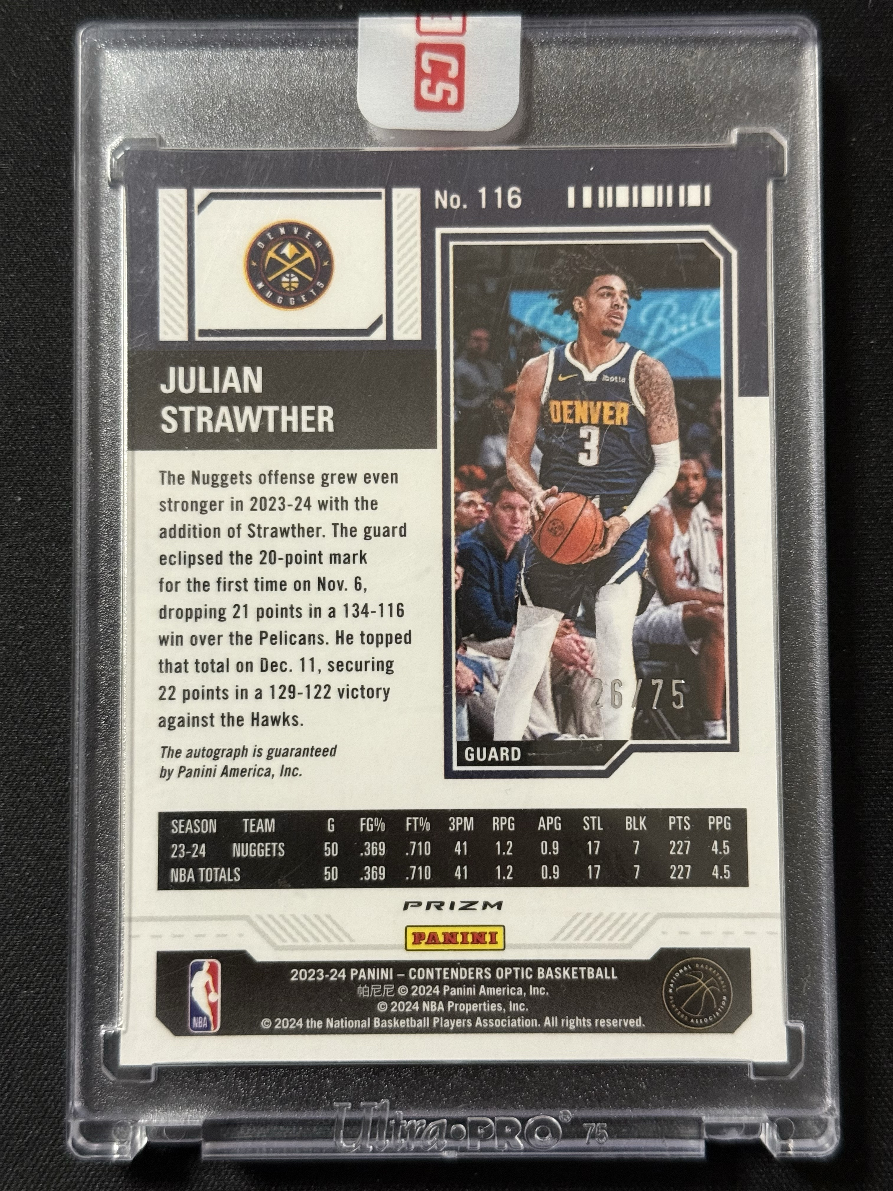 2023-24 Panini Contenders Optic Julian Strawther RC 朱利安 斯特劳瑟 op 球票 卡签 签字 26/75编 绿折 折射 新秀 实卡好看 值得收藏