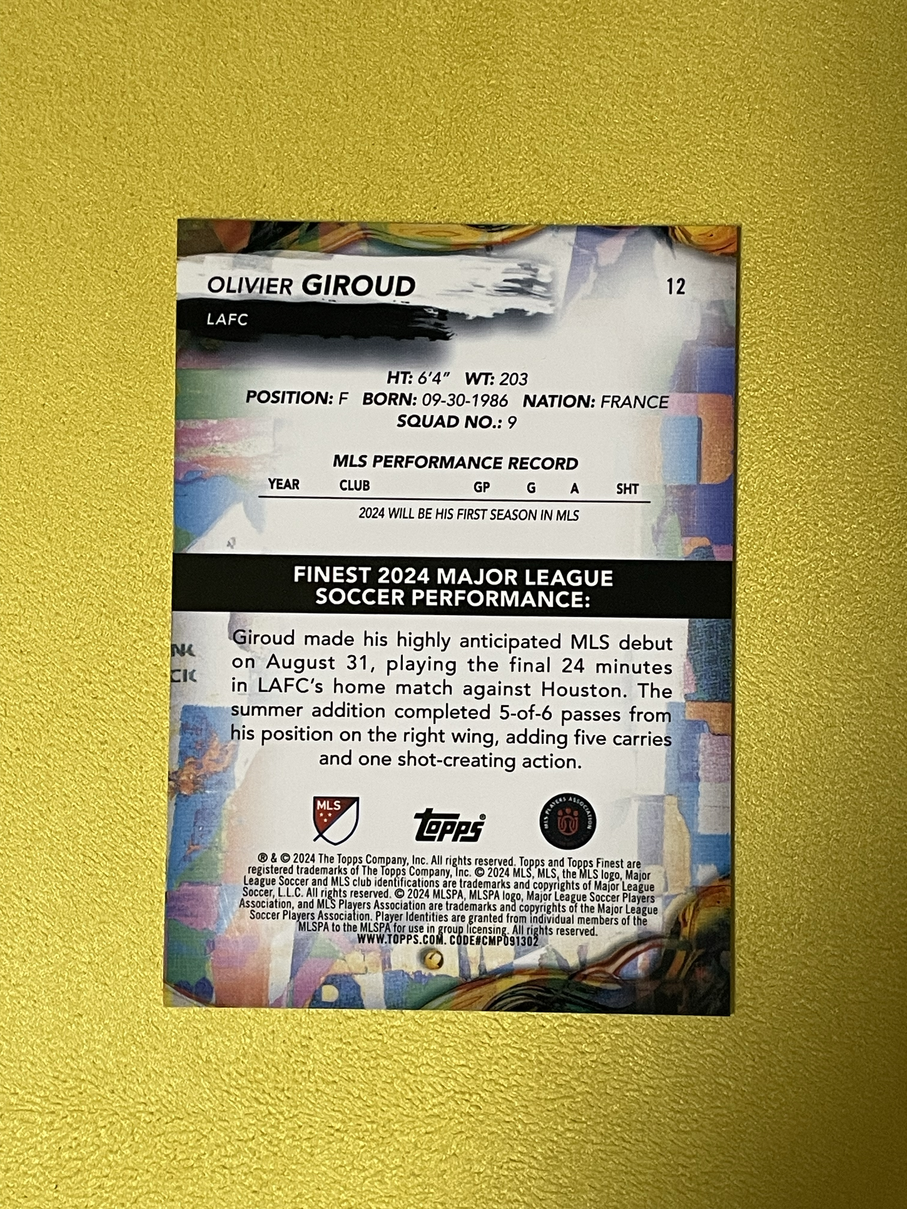 【We Are MLS】2025 Topps Finest Olivier Giroud 美职联 洛杉矶FC AC米兰 法国 吉鲁 幻彩 大比例箱货 ssp 50编 金折 折射 卡品如图 收藏必备
