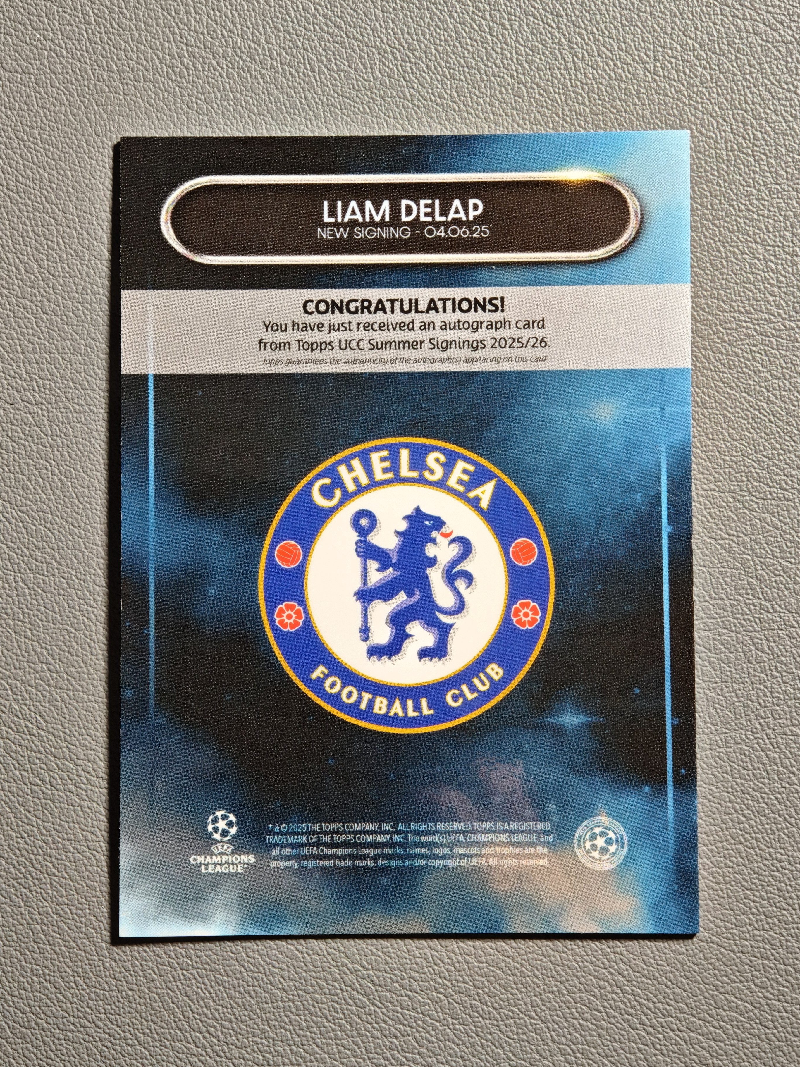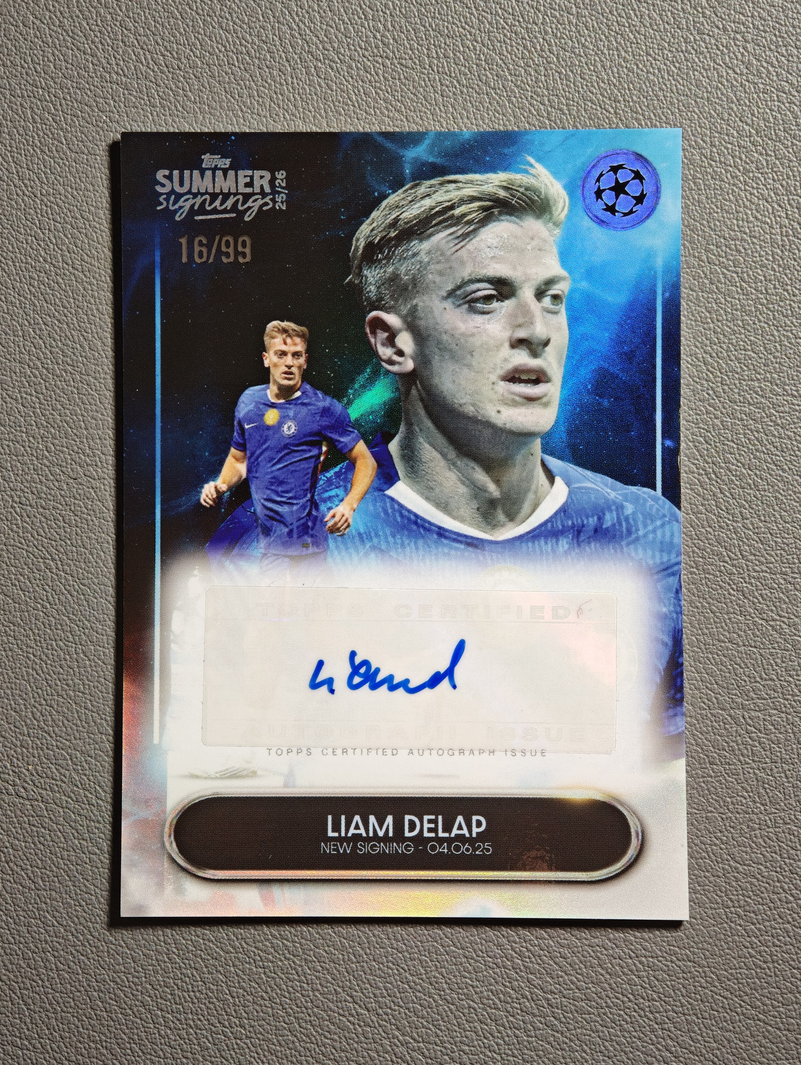 【闪电拍卖】2025-26 Topps Summer Signings Liam Delap 欧冠 夏季转会盒 切尔西 利亚姆 德拉普 16/99编 曼城 新签约 签字 蓝折 微瑕 SZ126