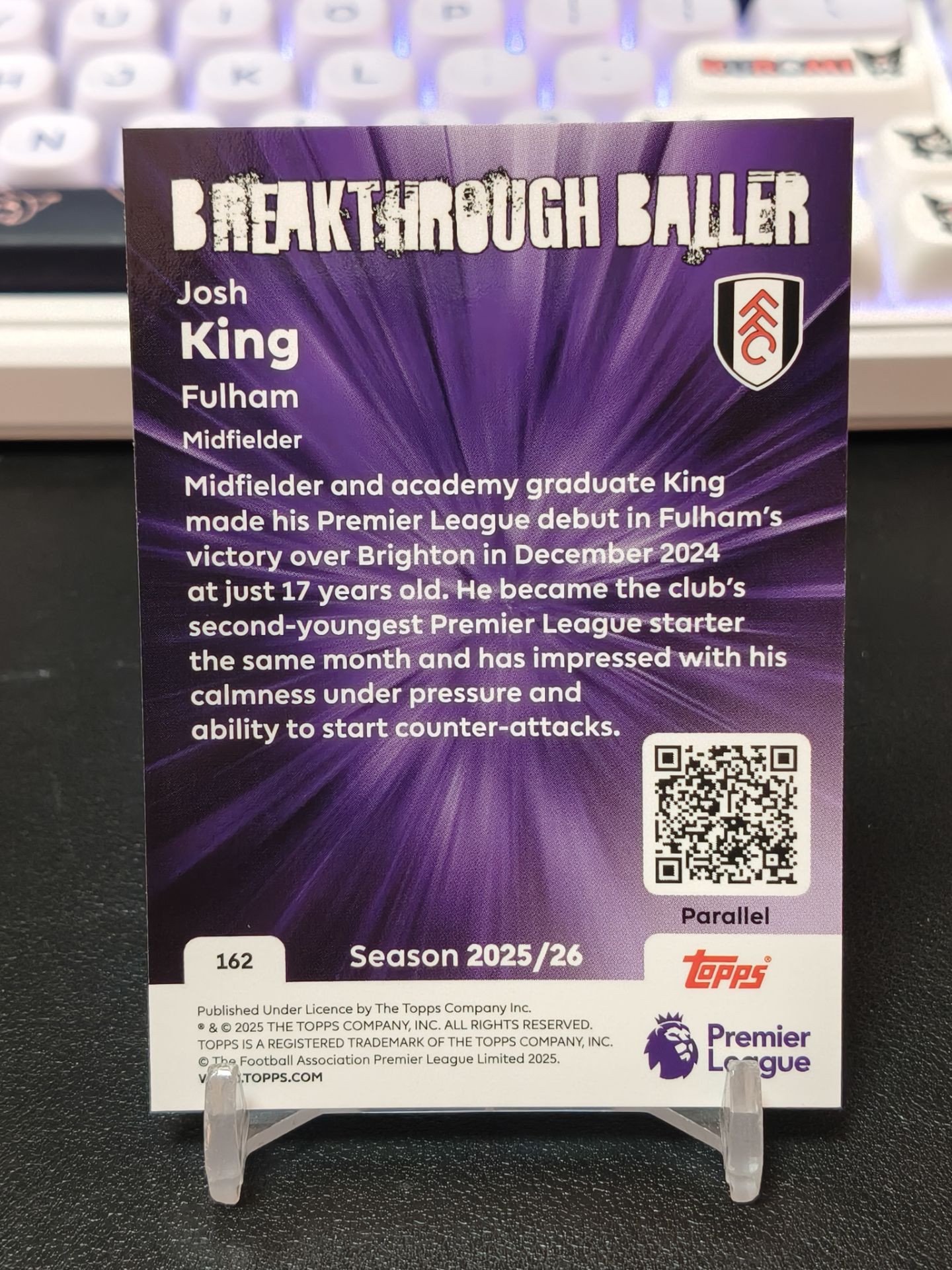 【浩行拍卖 截标预付82%】2025 topps season josh king 英超 新赛季 富勒姆 乔希金 RC 新秀 绿折 折射 breakthrough Baller 特卡 13/99编 专收必备 瑕疵看图「秋彤」1206G01兿